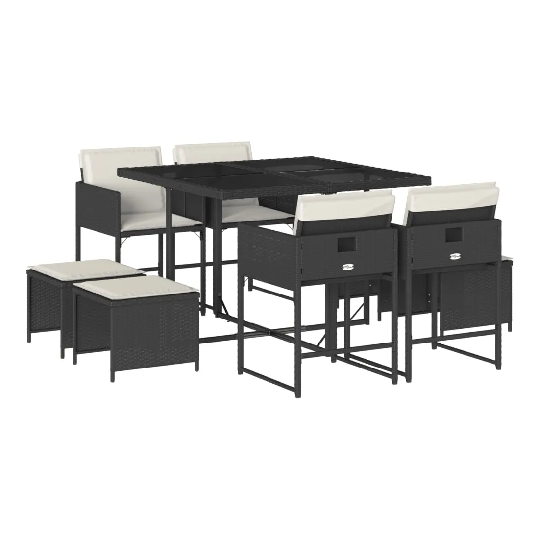 Cet ensemble de salle à manger de jardin est un excellent choix pour les repas en plein air ou pour vous détendre dans le jardin, dans l'arrière-cour ou sur la terrasse. Matériau durable : la résine tressée, également connue sous le nom de poly rotin, est un matériau synthétique solide et nécessitant peu d'entretien qui ressemble au rotin naturel. Il est léger, facile à nettoyer et couramment utilisé pour les meubles d'extérieur en raison de sa durabilité et de ses propriétés de résistance aux intempéries.Rangement compact : ces chaises sont dotées d'un dossier rabattable, ce qui permet de les ranger facilement sous la table. Une fois pliées, elles se rangent parfaitement sous la table, formant un cube peu encombrant. De plus, les tabourets peuvent également être rangés sous les chaises, maximisant encore davantage l'efficacité de l'espace.Expérience d'assise confortable : ce mobilier d'extérieur, doté de coussins épais, offre une expérience d'assise confortable.Housse amovible et lavable : ces coussins de siège sont dotés de housses amovibles pour un lavage et un entretien faciles. Les housses de coussin ont un rabat à l'arrière pour une fixation facile aux dossiers.Dessus en verre : le dessus de la table d'extérieur est fabriqué en verre trempé solide et durable, ce qui le rend facile à nettoyer avec un chiffon humide et ajoute une touche d'élégance à votre espace extérieur. Bon à savoir : Pour que vos meubles d'extérieur restent beaux, nous vous recommandons de les protéger avec une housse imperméable.