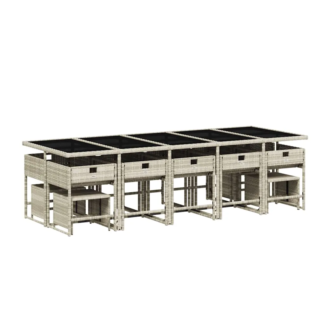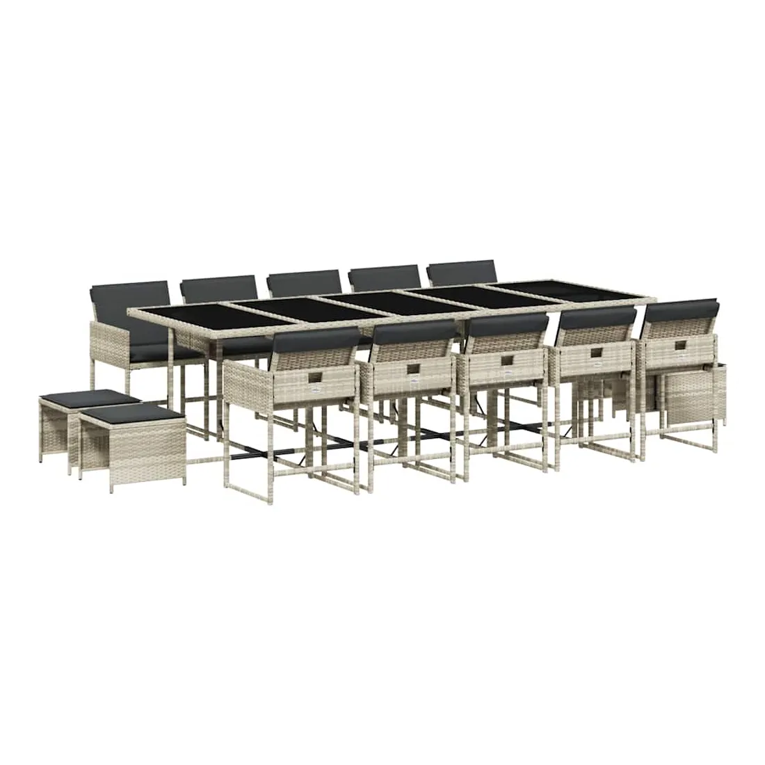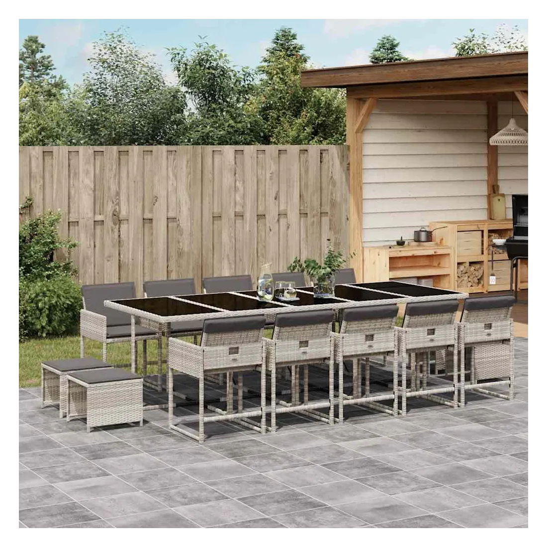 Cet ensemble de salle à manger de jardin est un excellent choix pour les repas en plein air ou pour vous détendre dans le jardin, dans l'arrière-cour ou sur la terrasse. Matériau durable : la résine tressée, également connue sous le nom de poly rotin, est un matériau synthétique solide et nécessitant peu d'entretien qui ressemble au rotin naturel. Il est léger, facile à nettoyer et couramment utilisé pour les meubles d'extérieur en raison de sa durabilité et de ses propriétés de résistance aux intempéries.Rangement compact : ces chaises sont dotées d'un dossier rabattable, ce qui permet de les ranger facilement sous la table. Une fois pliées, elles se rangent parfaitement sous la table, formant un cube peu encombrant. De plus, les tabourets peuvent également être rangés sous les chaises, maximisant encore davantage l'efficacité de l'espace.Expérience d'assise confortable : ce mobilier d'extérieur, doté de coussins épais, offre une expérience d'assise confortable.Housse amovible et lavable : ces coussins de siège sont dotés de housses amovibles pour un lavage et un entretien faciles. Les housses de coussin ont un rabat à l'arrière pour une fixation facile aux dossiers.Dessus en verre : le dessus de la table d'extérieur est fabriqué en verre trempé solide et durable, ce qui le rend facile à nettoyer avec un chiffon humide et ajoute une touche d'élégance à votre espace extérieur. Bon à savoir : Pour que vos meubles d'extérieur restent beaux, nous vous recommandons de les protéger avec une housse imperméable.