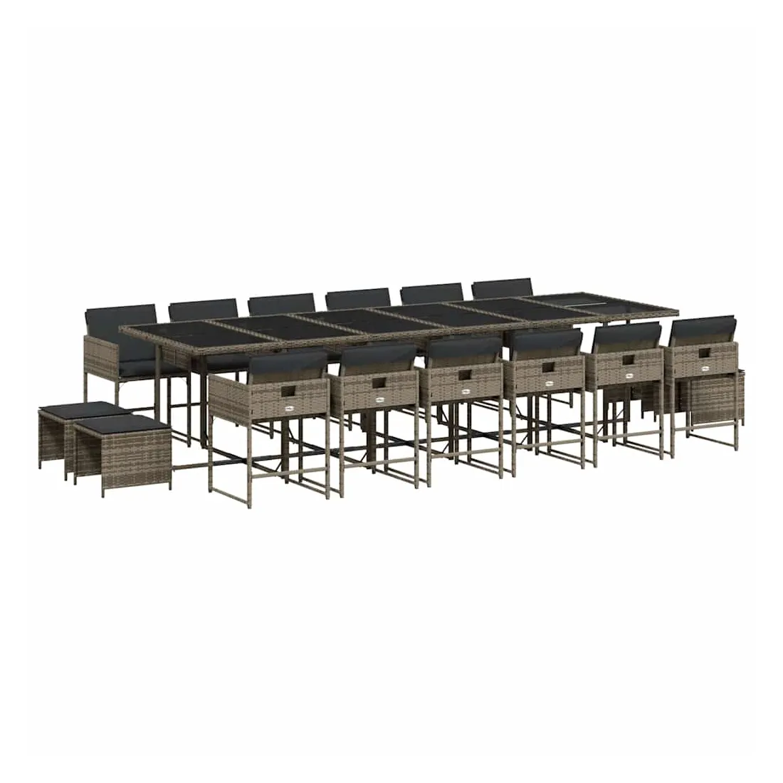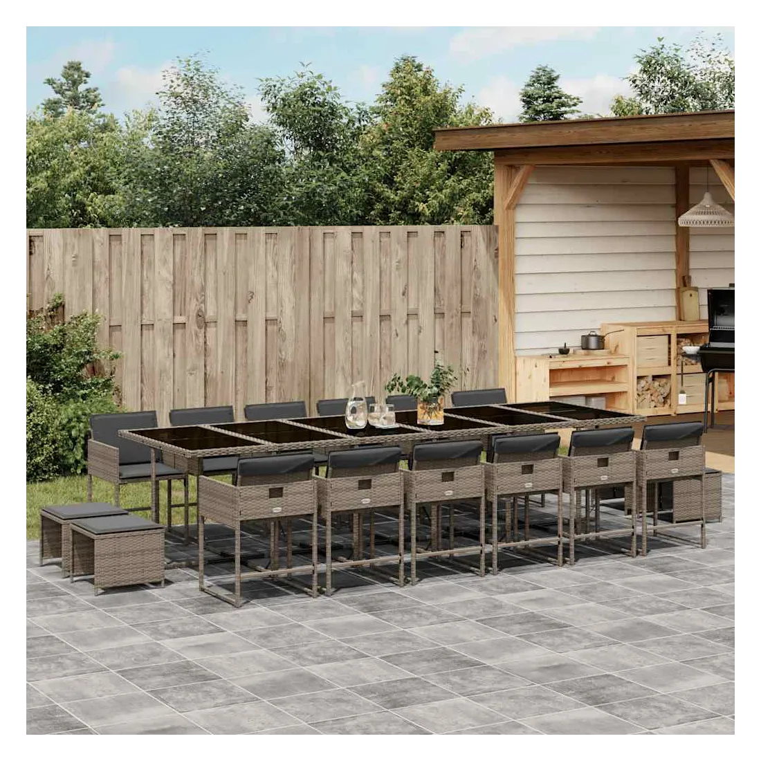 Cet ensemble de salle à manger de jardin est un excellent choix pour les repas en plein air ou pour vous détendre dans le jardin, dans l'arrière-cour ou sur la terrasse. Matériau durable : la résine tressée, également connue sous le nom de poly rotin, est un matériau synthétique solide et nécessitant peu d'entretien qui ressemble au rotin naturel. Il est léger, facile à nettoyer et couramment utilisé pour les meubles d'extérieur en raison de sa durabilité et de ses propriétés de résistance aux intempéries.Rangement compact : ces chaises sont dotées d'un dossier rabattable, ce qui permet de les ranger facilement sous la table. Une fois pliées, elles se rangent parfaitement sous la table, formant un cube peu encombrant. De plus, les tabourets peuvent également être rangés sous les chaises, maximisant encore davantage l'efficacité de l'espace.Expérience d'assise confortable : ce mobilier d'extérieur, doté de coussins épais, offre une expérience d'assise confortable.Housse amovible et lavable : ces coussins de siège sont dotés de housses amovibles pour un lavage et un entretien faciles. Les housses de coussin ont un rabat à l'arrière pour une fixation facile aux dossiers.Dessus en verre : le dessus de la table d'extérieur est fabriqué en verre trempé solide et durable, ce qui le rend facile à nettoyer avec un chiffon humide et ajoute une touche d'élégance à votre espace extérieur. Bon à savoir : Pour que vos meubles d'extérieur restent beaux, nous vous recommandons de les protéger avec une housse imperméable.