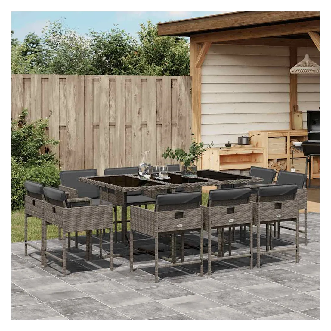 Cet ensemble de salle à manger de jardin est un excellent choix pour les repas en plein air ou pour vous détendre dans le jardin, l'arrière-cour ou le patio. Matériau durable : la résine tressée, également connue sous le nom de poly rotin, est un matériau synthétique solide et nécessitant peu d'entretien qui ressemble au rotin naturel. Il est léger, facile à nettoyer et couramment utilisé pour les meubles d'extérieur en raison de sa durabilité et de ses propriétés de résistance aux intempéries.Rangement compact : ces chaises sont dotées d'un dossier rabattable, ce qui permet de les ranger facilement sous la table. Une fois pliées, elles se rangent parfaitement sous la table, formant un cube peu encombrant.Expérience d'assise confortable : ce mobilier d'extérieur, doté de coussins épais, offre une expérience d'assise confortable.Housse amovible et lavable : ces coussins de siège sont dotés de housses amovibles pour un lavage et un entretien faciles. Les housses de coussin de chaise ont un rabat à l'arrière pour une fixation facile aux chaises.Dessus en verre : le dessus de la table de jardin est fabriqué en verre trempé solide et durable, ce qui le rend facile à nettoyer avec un chiffon humide et ajoute une touche d'élégance à votre espace extérieur. Bon à savoir :Pour que vos meubles d'extérieur restent beaux, nous vous recommandons de les protéger avec une housse imperméable.