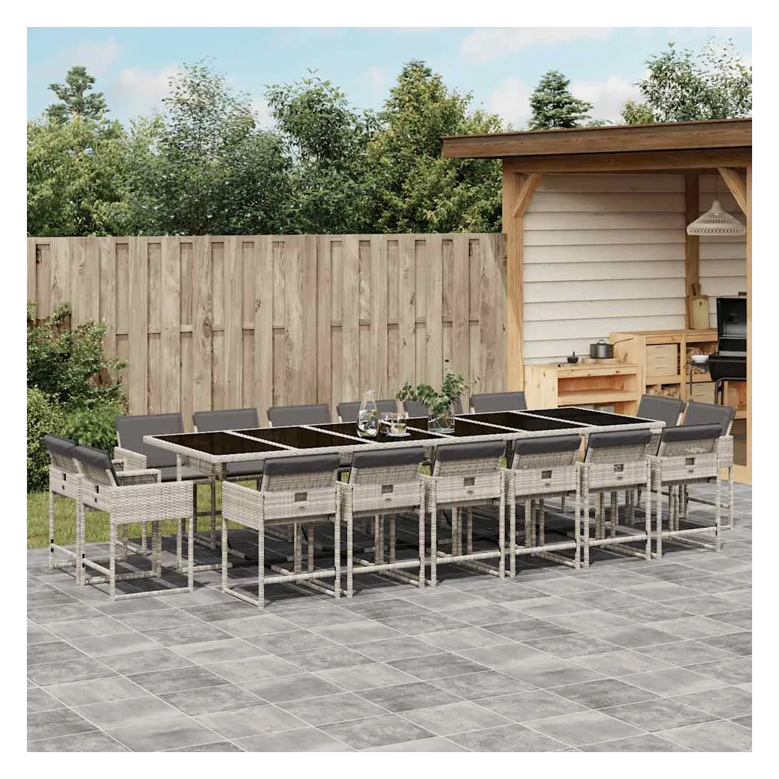 Cet ensemble de salle à manger de jardin est un excellent choix pour les repas en plein air ou pour vous détendre dans le jardin, l'arrière-cour ou le patio. Matériau durable : la résine tressée, également connue sous le nom de poly rotin, est un matériau synthétique solide et nécessitant peu d'entretien qui ressemble au rotin naturel. Il est léger, facile à nettoyer et couramment utilisé pour les meubles d'extérieur en raison de sa durabilité et de ses propriétés de résistance aux intempéries.Rangement compact : ces chaises sont dotées d'un dossier rabattable, ce qui permet de les ranger facilement sous la table. Une fois pliées, elles se rangent parfaitement sous la table, formant un cube peu encombrant.Expérience d'assise confortable : ce mobilier d'extérieur, doté de coussins épais, offre une expérience d'assise confortable.Housse amovible et lavable : ces coussins de siège sont dotés de housses amovibles pour un lavage et un entretien faciles. Les housses de coussin de chaise ont un rabat à l'arrière pour une fixation facile aux chaises.Dessus en verre : le dessus de la table de jardin est fabriqué en verre trempé solide et durable, ce qui le rend facile à nettoyer avec un chiffon humide et ajoute une touche d'élégance à votre espace extérieur. Bon à savoir :Pour que vos meubles d'extérieur restent beaux, nous vous recommandons de les protéger avec une housse imperméable.