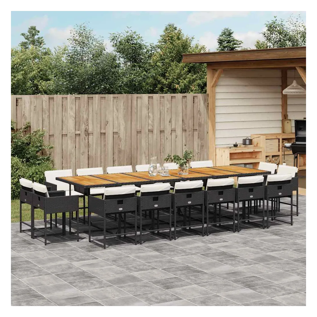 Cet ensemble de salle à manger de jardin est un excellent choix pour les repas en plein air ou pour vous détendre dans le jardin, l'arrière-cour ou le patio. Matériau durable : la résine tressée, également connue sous le nom de poly rotin, est un matériau synthétique solide et nécessitant peu d'entretien qui ressemble au rotin naturel. Il est léger, facile à nettoyer et couramment utilisé pour les meubles d'extérieur en raison de sa durabilité et de ses propriétés de résistance aux intempéries.Rangement compact : ces chaises sont dotées d'un dossier rabattable, ce qui permet de les ranger facilement sous la table. Une fois pliées, elles se rangent parfaitement sous la table, formant un cube peu encombrant.Expérience d'assise confortable : ce mobilier d'extérieur, doté de coussins épais, offre une expérience d'assise confortable.Housse amovible et lavable : ces coussins de siège sont dotés de housses amovibles pour un lavage et un entretien faciles. Les housses de coussin de chaise ont un rabat à l'arrière pour une fixation facile aux chaises.Dessus stable et facile à nettoyer : cette table de patio a un dessus en bois d'acacia robuste, durable et facile à nettoyer avec un chiffon humide. Bon à savoir :Pour que vos meubles d'extérieur restent beaux, nous vous recommandons de les protéger avec une housse imperméable.