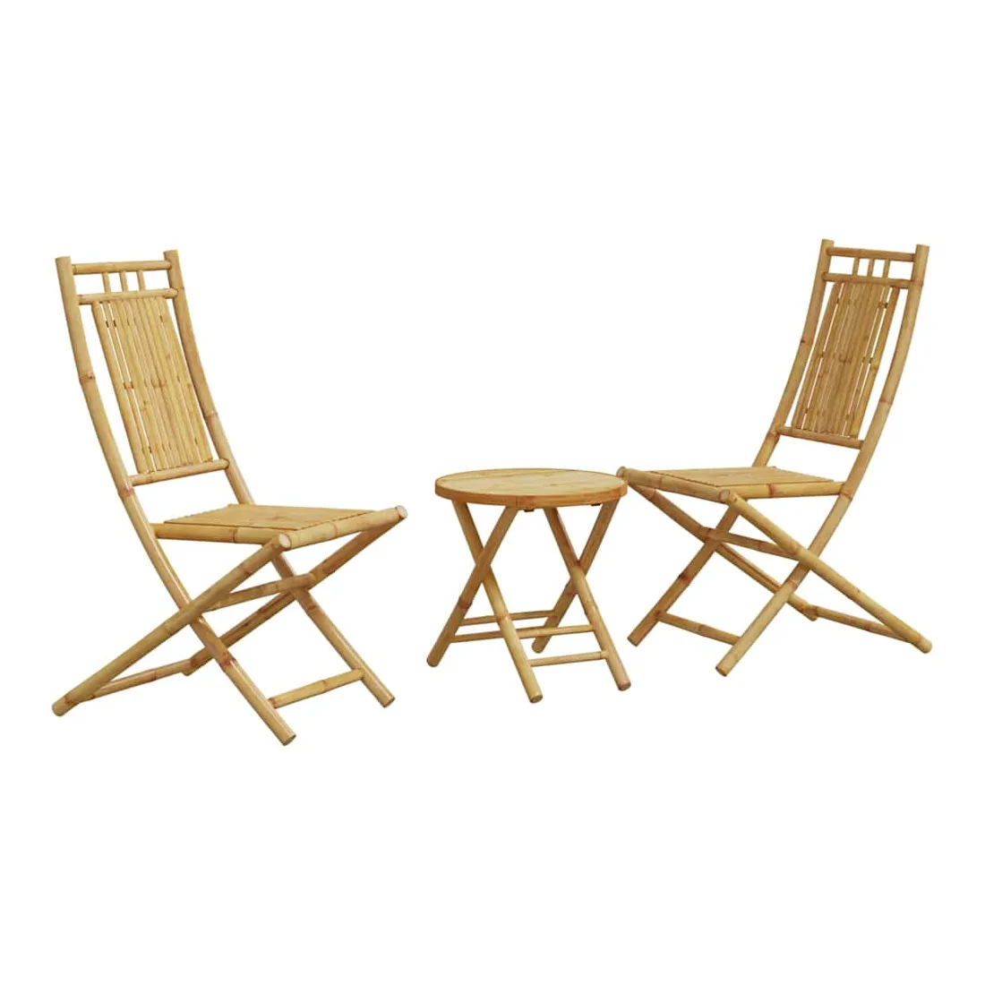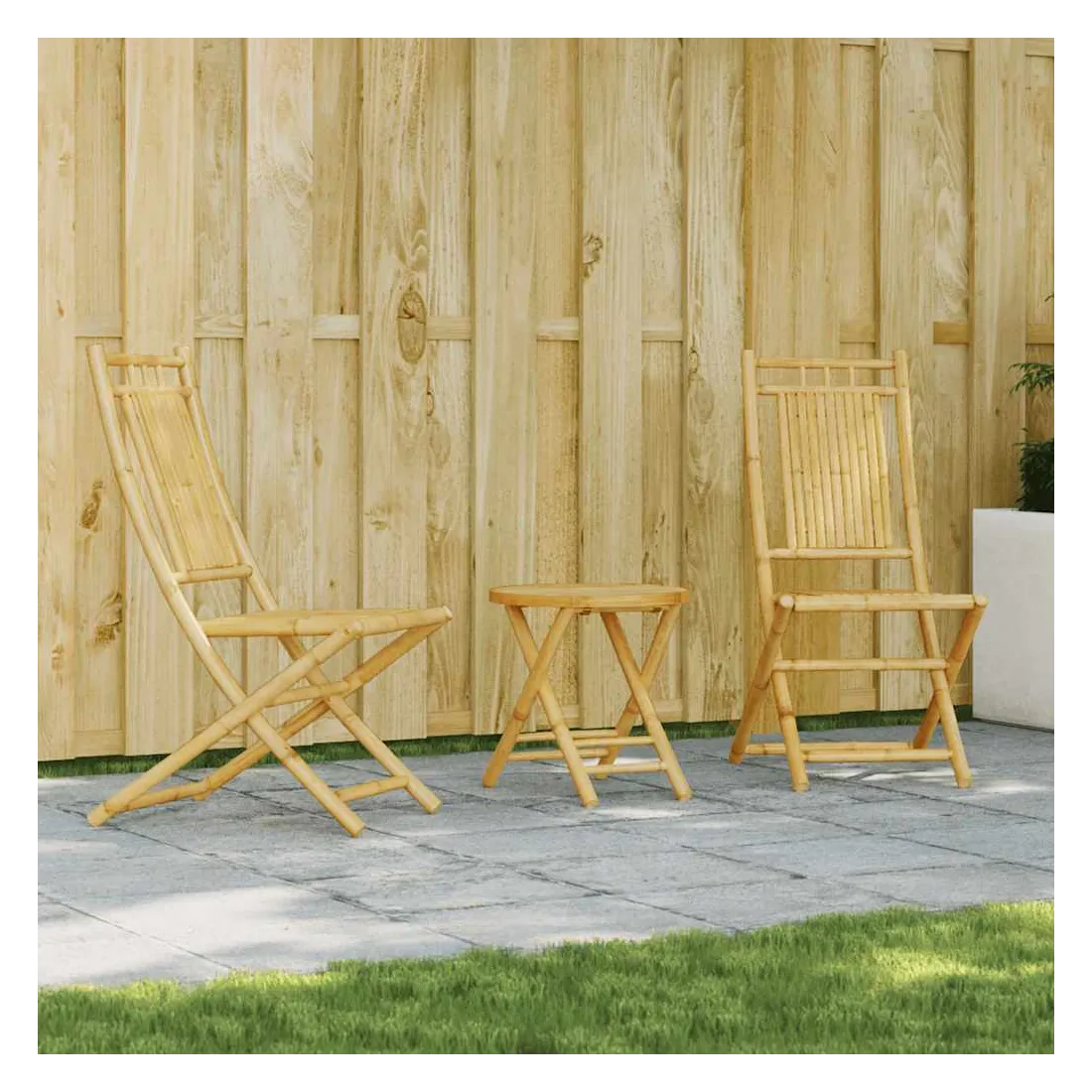 Savourez une tasse de café ou discutez avec votre famille et vos amis dans le jardin, l'arrière-cour ou sur le balcon avec cet ensemble de bistro ! Durable : en tant que matériau naturel, le bambou offre une bonne respirabilité et une faible odeur. Ces qualités rendent l’ensemble de bistro de jardin durable, résistant à l’eau et de longue durée.Design pliable : l'ensemble de bistro d'extérieur peut être facilement plié lorsqu'il n'est pas utilisé pour faciliter le rangement et le transport.Dessus stable : le dessus stable de la table de jardin est idéal pour placer votre boisson ou toute autre nécessité dont vous avez besoin à portée de main.Une expérience d'assise confortable : dotée d'un dossier, la chaise d'extérieur vous offre un confort optimal. Bon à savoir :Pour que vos meubles d'extérieur restent beaux, nous vous recommandons de les protéger avec une housse imperméable.