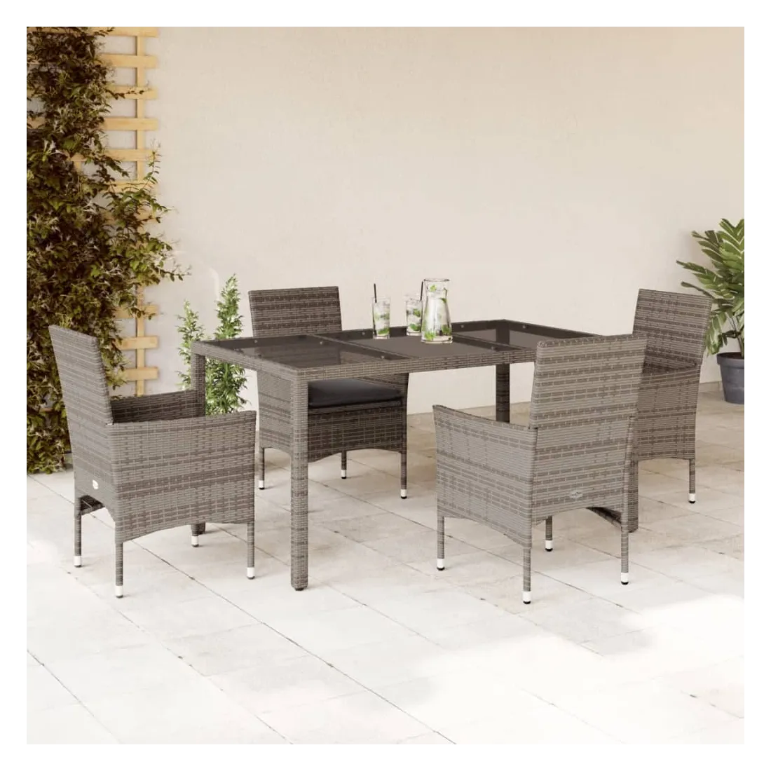 Cet ensemble de salle à manger de jardin est un excellent choix pour les repas en plein air ou pour vous détendre dans le jardin, dans l'arrière-cour ou sur la terrasse. Matériau durable : la résine tressée, également connue sous le nom de poly rotin, est un matériau synthétique solide et nécessitant peu d'entretien qui ressemble au rotin naturel. Il est léger, facile à nettoyer et couramment utilisé pour les meubles d'extérieur en raison de sa durabilité et de ses propriétés de résistance aux intempéries.Expérience d'assise confortable : cet ensemble de meubles d'extérieur, doté de coussins épais, offre une expérience d'assise confortable.Housse amovible et lavable : ces coussins de siège sont dotés de housses amovibles pour un lavage et un entretien faciles.Dessus en verre : le dessus de la table d'extérieur est fabriqué en verre trempé solide et durable, ce qui le rend facile à nettoyer avec un chiffon humide et ajoute une touche d'élégance à votre espace extérieur. Bon à savoir :Pour que vos meubles d'extérieur restent beaux, nous vous recommandons de les protéger avec une housse imperméable.