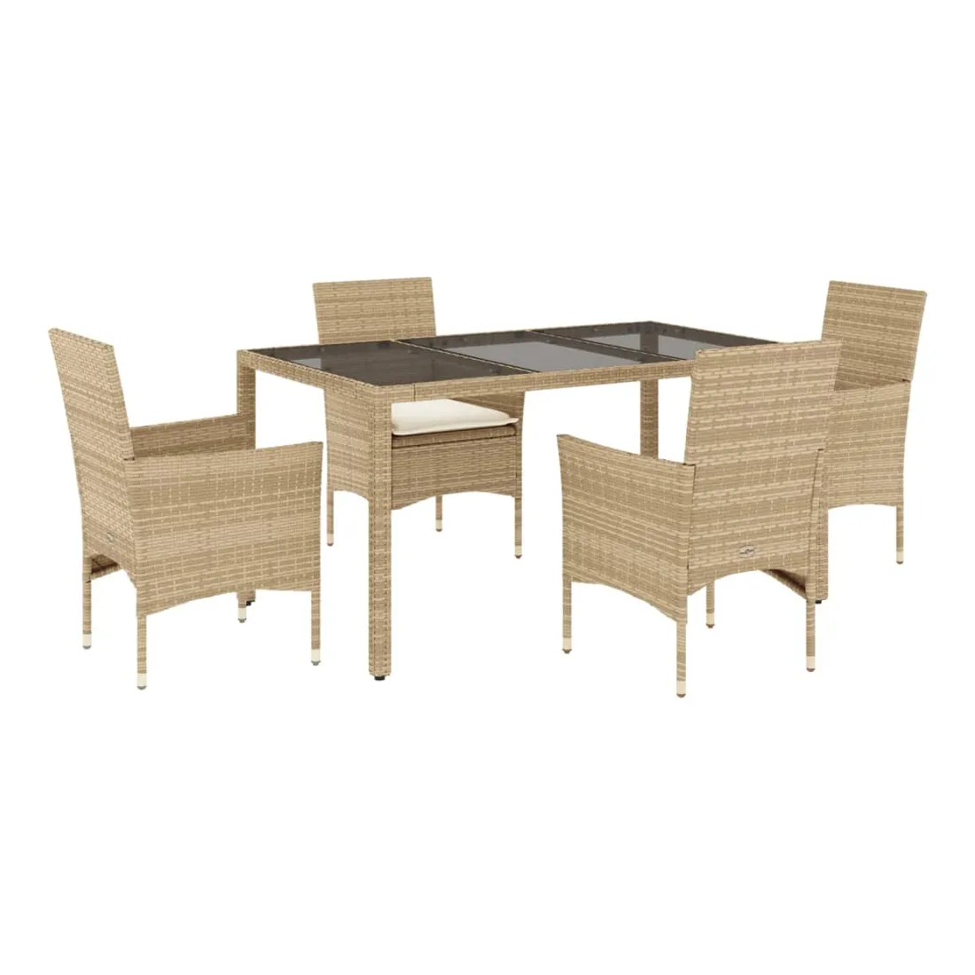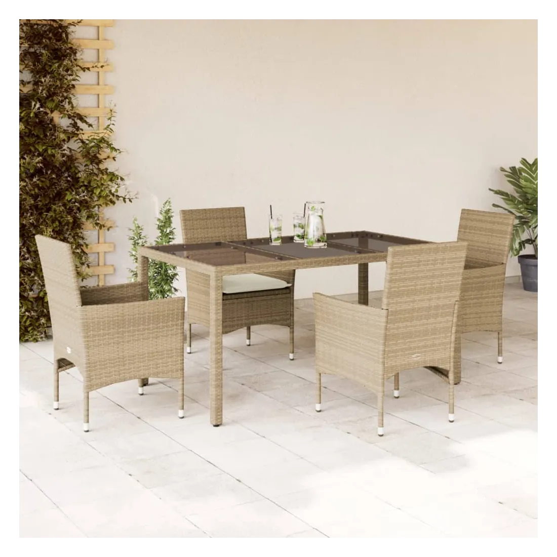 Ensemble à manger de jardin et coussins 5 pcs beige rotin verre