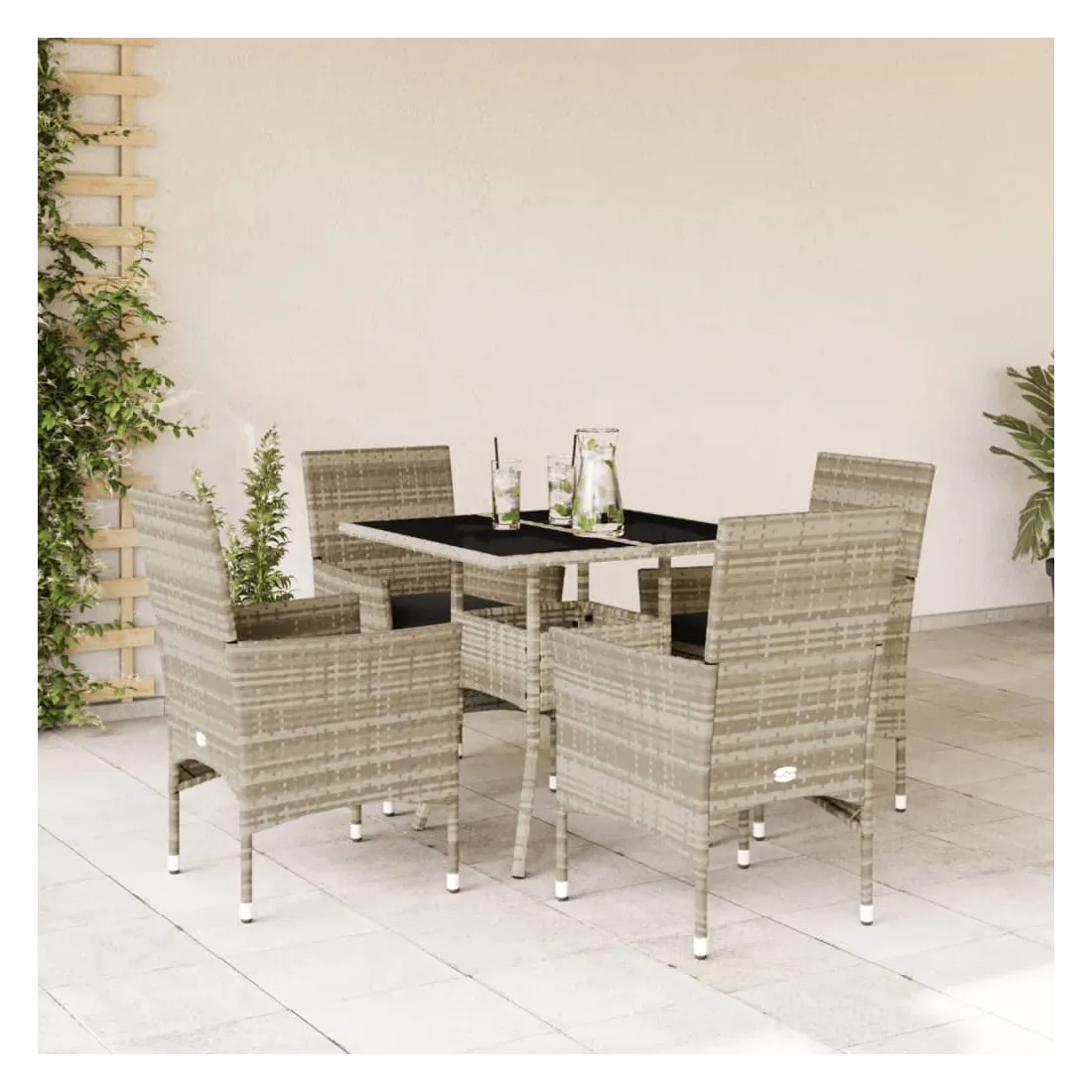 Cet ensemble de salle à manger de jardin est un excellent choix pour les repas en plein air ou pour vous détendre dans le jardin, dans l'arrière-cour ou sur la terrasse. Matériau durable : la résine tressée, également connue sous le nom de poly rotin, est un matériau synthétique solide et nécessitant peu d'entretien qui ressemble au rotin naturel. Il est léger, facile à nettoyer et couramment utilisé pour les meubles d'extérieur en raison de sa durabilité et de ses propriétés de résistance aux intempéries.Expérience d'assise confortable : cet ensemble de meubles d'extérieur, doté de coussins épais, offre une expérience d'assise confortable.Housse amovible et lavable : ces coussins de siège sont dotés de housses amovibles pour un lavage et un entretien faciles.Dessus en verre : le dessus de la table d'extérieur est fabriqué en verre trempé solide et durable, ce qui le rend facile à nettoyer avec un chiffon humide et ajoute une touche d'élégance à votre espace extérieur. Bon à savoir :Pour que vos meubles d'extérieur restent beaux, nous vous recommandons de les protéger avec une housse imperméable.