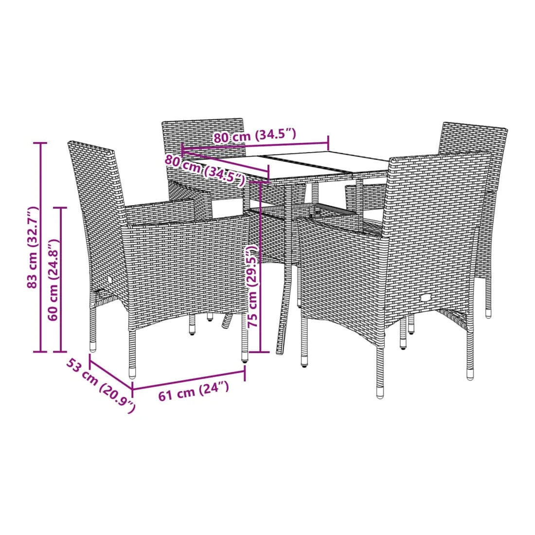 - Dimensions : 80 x 80 x 75 cm (l x P x H)