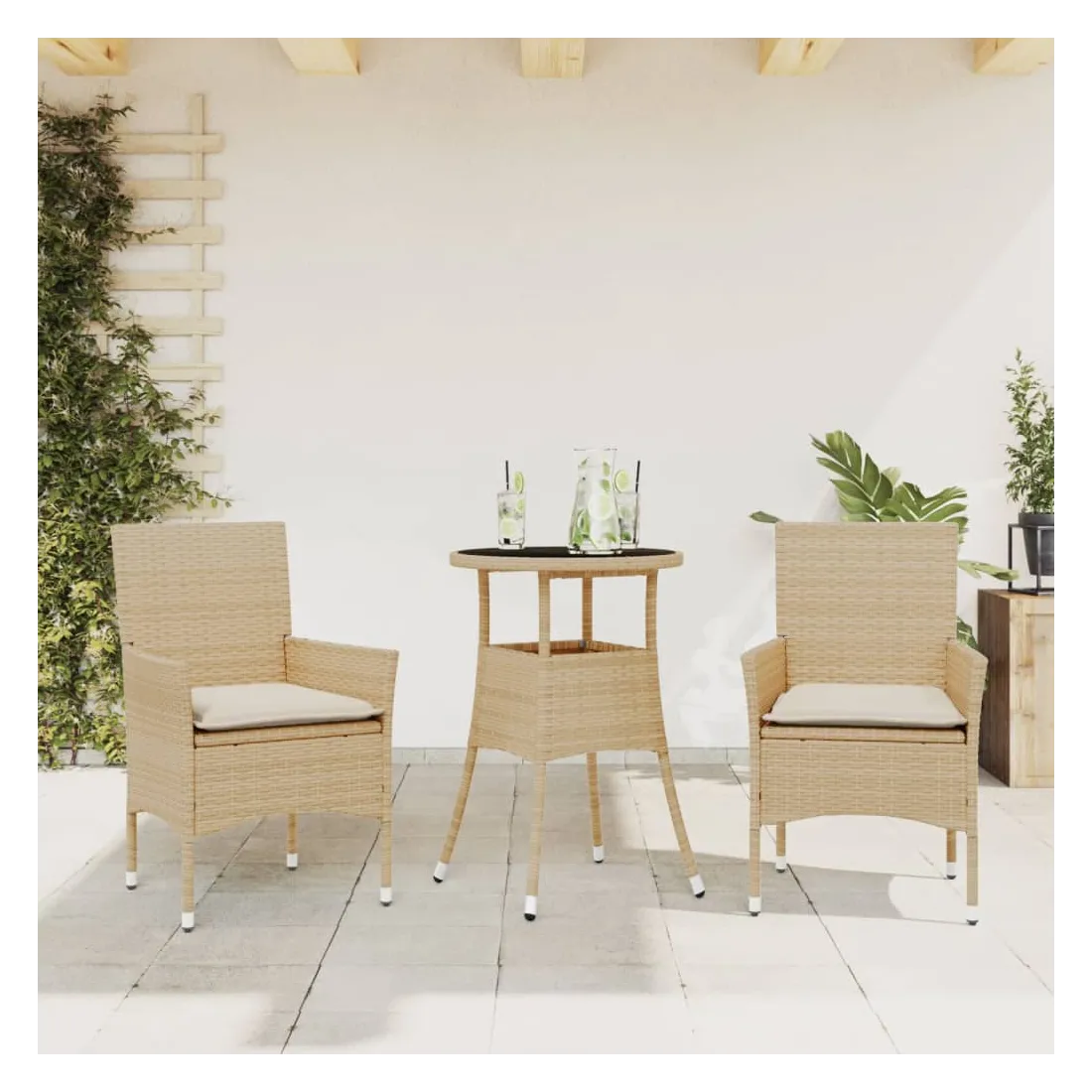 Cet ensemble de salle à manger de jardin est un excellent choix pour les repas en plein air ou pour vous détendre dans le jardin, dans l'arrière-cour ou sur la terrasse. Matériau durable : la résine tressée, également connue sous le nom de poly rotin, est un matériau synthétique solide et nécessitant peu d'entretien qui ressemble au rotin naturel. Il est léger, facile à nettoyer et couramment utilisé pour les meubles d'extérieur en raison de sa durabilité et de ses propriétés de résistance aux intempéries.Expérience d'assise confortable : cet ensemble de meubles d'extérieur, doté de coussins épais, offre une expérience d'assise confortable.Housse amovible et lavable : ces coussins de siège sont dotés de housses amovibles pour un lavage et un entretien faciles.Dessus en verre : le dessus de la table d'extérieur est fabriqué en verre trempé solide et durable, ce qui le rend facile à nettoyer avec un chiffon humide et ajoute une touche d'élégance à votre espace extérieur. Bon à savoir :Pour que vos meubles d'extérieur restent beaux, nous vous recommandons de les protéger avec une housse imperméable.