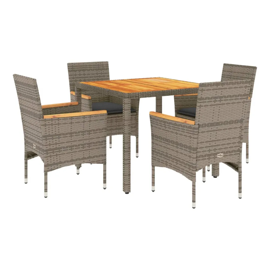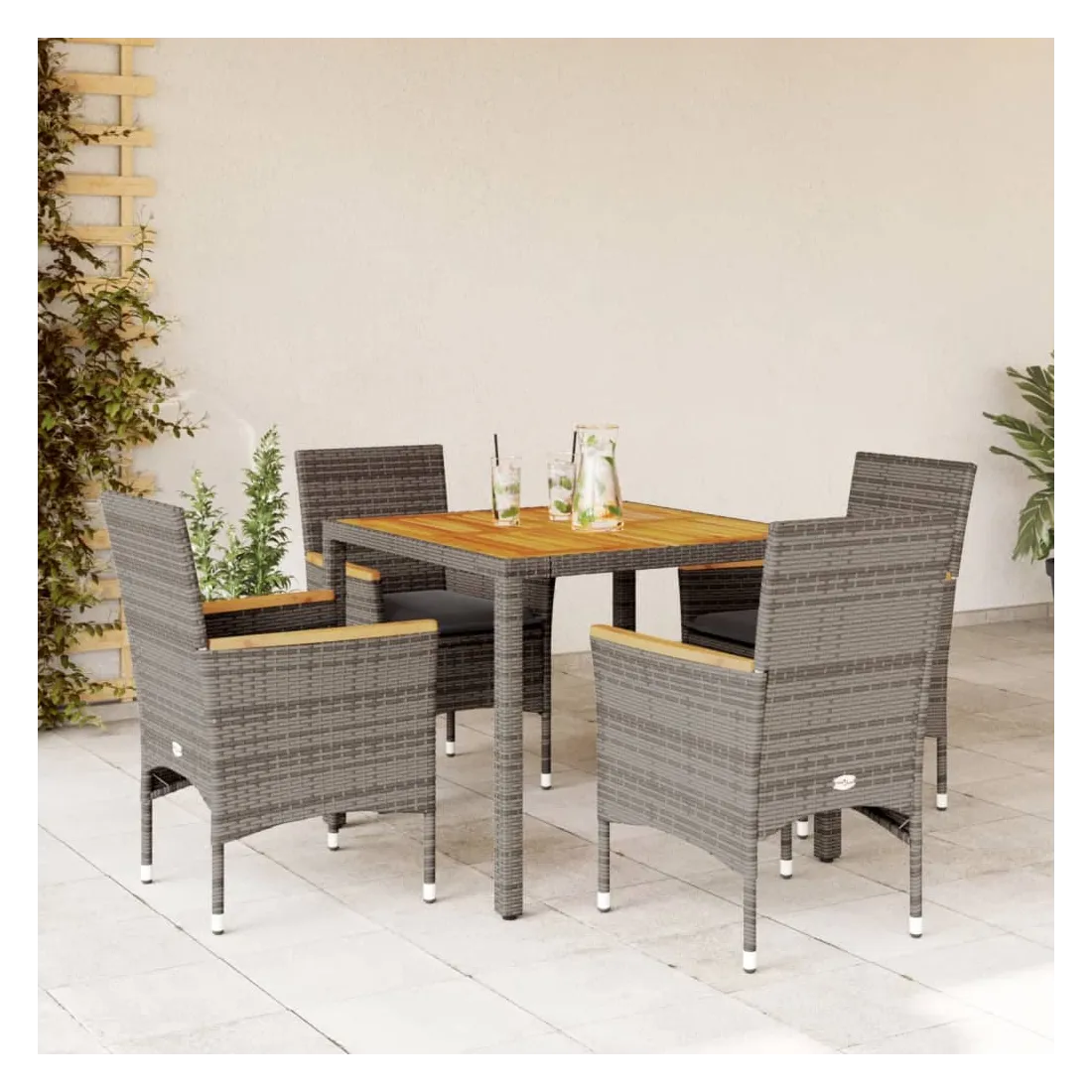 Cet ensemble de salle à manger de jardin est un excellent choix pour les repas en plein air ou pour vous détendre dans le jardin, dans l'arrière-cour ou sur la terrasse. Matériau durable : la résine tressée, également connue sous le nom de poly rotin, est un matériau synthétique solide et nécessitant peu d'entretien qui ressemble au rotin naturel. Il est léger, facile à nettoyer et couramment utilisé pour les meubles d'extérieur en raison de sa durabilité et de ses propriétés de résistance aux intempéries.Expérience d'assise confortable : cet ensemble de meubles d'extérieur, doté de coussins épais, offre une expérience d'assise confortable.Housse amovible et lavable : ces coussins de siège sont dotés de housses amovibles pour un lavage et un entretien faciles.Dessus stable et facile à nettoyer : cette table de jardin a un dessus en bois d'acacia robuste, durable et facile à nettoyer avec un chiffon humide. Bon à savoir :Pour que vos meubles d'extérieur restent beaux, nous vous recommandons de les protéger avec une housse imperméable.