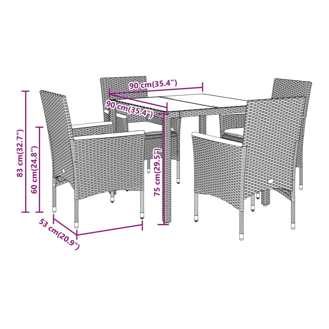 - 90 x 90 x 75 cm