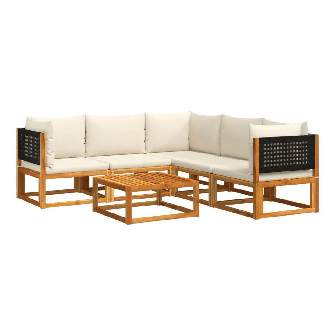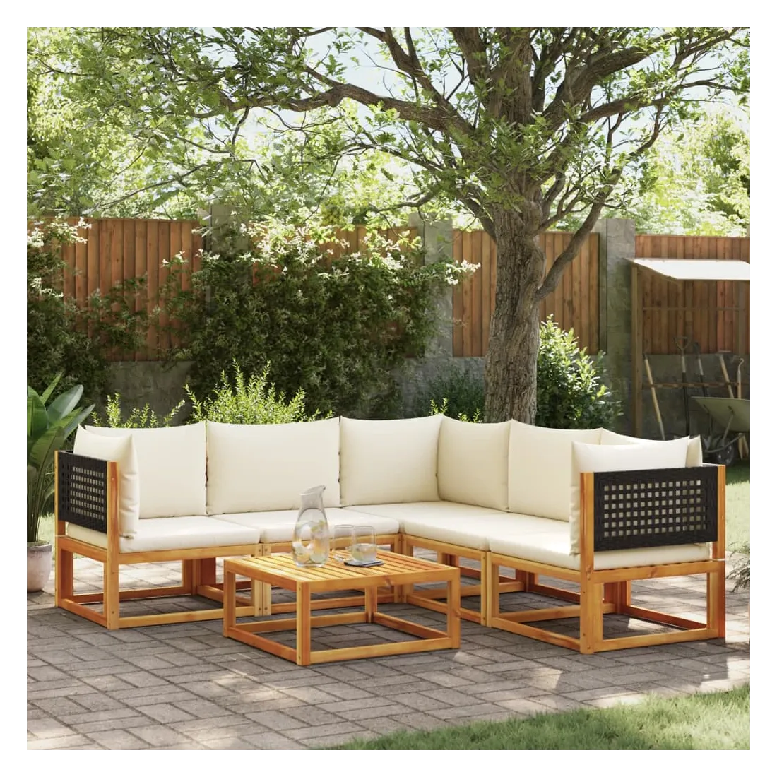 Ensemble de canapés de jardin 6 pièces avec coussins en bois d'acacia et rotin