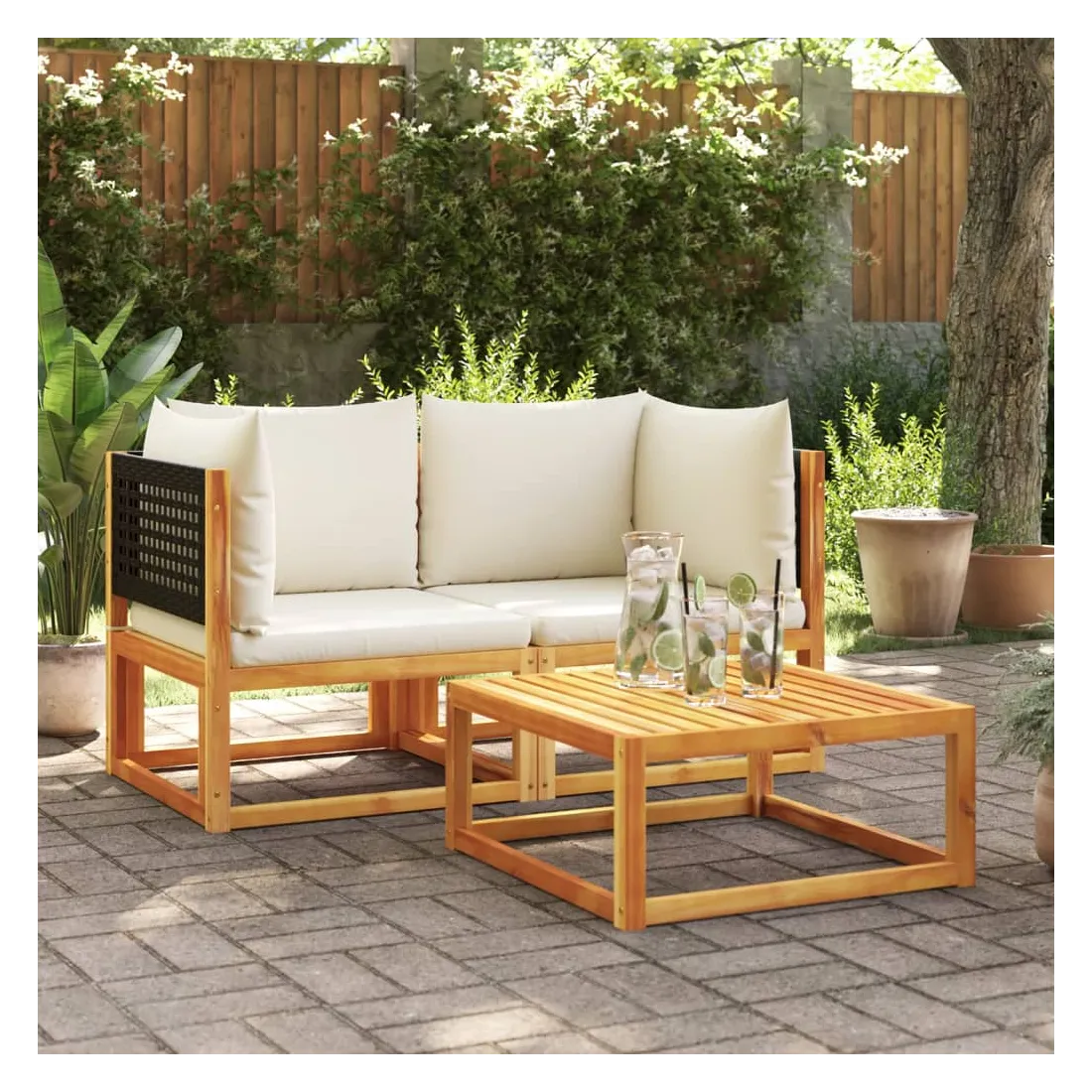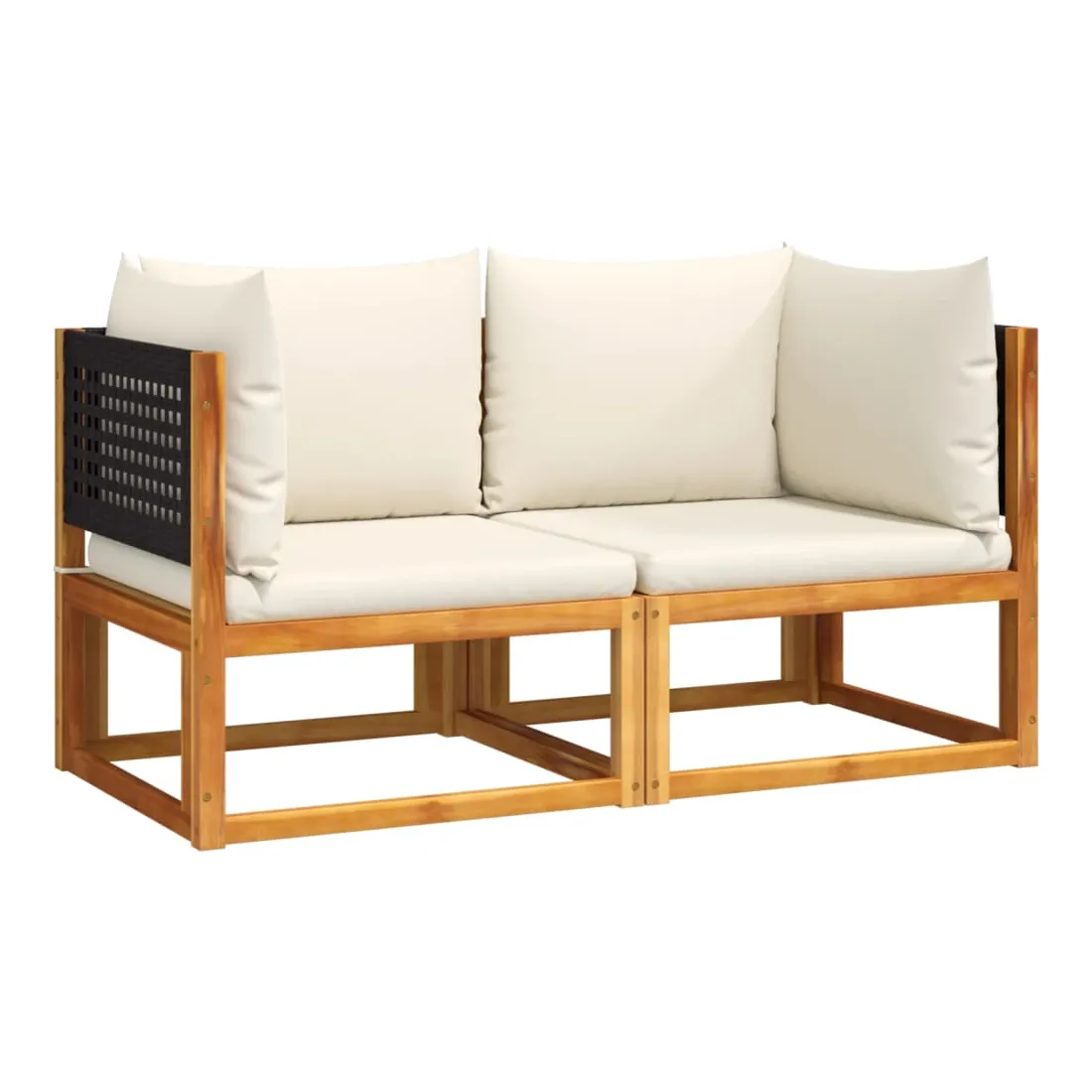 Ces canapés de jardin en bois avec dossiers et coussins en rotin tressé seront un excellent ajout à votre jardin, terrasse ou patio pour discuter en famille et entre amis ou simplement profiter du beau temps. Dossier tressé élégant : ce canapé de jardin est doté de dossiers en rotin finement travaillés, ajoutant une touche sophistiquée à tout espace extérieur.Cadre robuste et stable : le bois d'acacia massif est connu pour sa résistance et sa durabilité. Ses couleurs variées et ses motifs de grain uniques lui confèrent une apparence attrayante. Avec une bonne stabilité et une bonne résistance aux intempéries, il est idéal pour la fabrication de meubles d'intérieur et d'extérieur. Expérience d'assise confortable : Ce mobilier d'extérieur, doté de coussins épais et rembourrés, offre une expérience d'assise confortable.Bien ventilé et anti-accumulation : La conception à lattes favorise une circulation d'air optimale et empêche efficacement l'accumulation d'eau, garantissant un mobilier de jardin sec et confortable.Housse amovible et lavable : Ces coussins d'assise sont dotés de housses amovibles pour un lavage et un entretien faciles.Conception modulaire : Ce mobilier d'extérieur a une conception modulaire, ce qui le rend entièrement flexible et facile à déplacer, vous permettant ainsi de créer un aménagement de mobilier d'extérieur personnalisé. Bon à savoir :Pour que votre mobilier d'extérieur reste beau, nous vous recommandons de le protéger avec une housse imperméable.