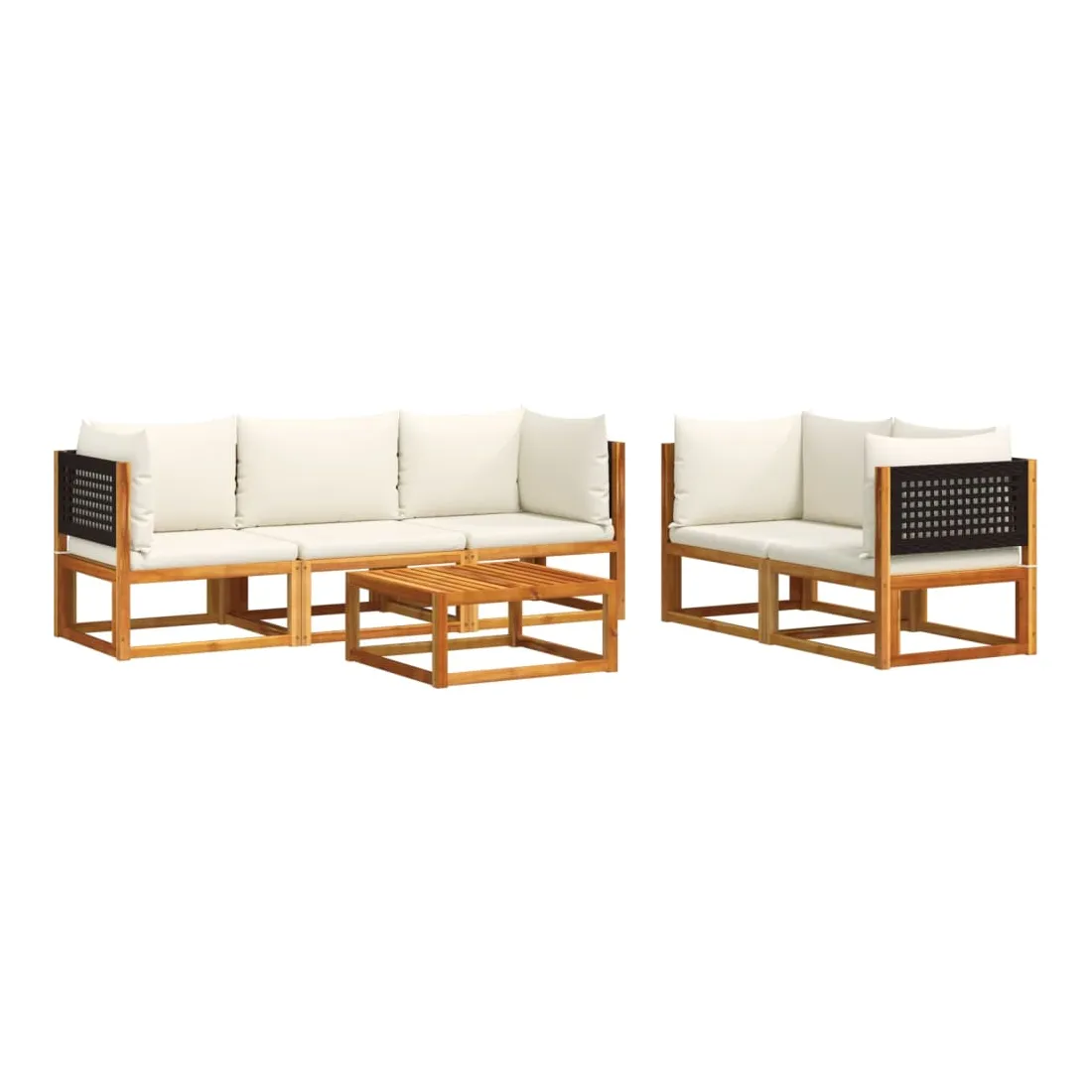 Ensemble de canapés de jardin 6 pièces avec coussins en bois d'acacia et rotin