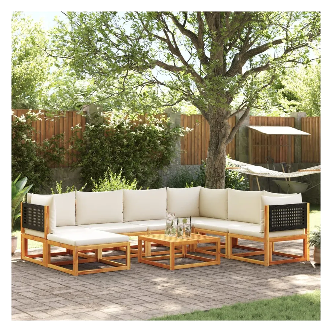 vidaXLCet ensemble de canapé de jardin avec dossiers en rotin tressé est le complément parfait à votre jardin, terrasse ou patio, offrant un espace confortable et accueillant pour discuter en famille et entre amis ou simplement se détendre et profiter du plein air. Dossier tressé élégant : Le canapé de jardin est doté de dossiers en rotin finement travaillés, ajoutant une touche sophistiquée à tout espace extérieur.Cadre robuste et stable : Le bois d'acacia massif est connu pour sa résistance et sa durabilité. Ses couleurs variées et ses motifs de grain uniques lui confèrent une apparence attrayante. Avec une bonne stabilité et une bonne résistance aux intempéries, il est idéal pour la fabrication de meubles d'intérieur et d'extérieur. Expérience d'assise confortable : Ce mobilier d'extérieur, doté de coussins épais et rembourrés, offre une expérience d'assise confortable.Bien ventilé et anti-accumulation : La conception à lattes favorise une circulation d'air optimale et empêche efficacement l'accumulation d'eau, garantissant un mobilier de jardin sec et confortable.Housse amovible et lavable : Ces coussins d'assise sont dotés de housses amovibles pour un lavage et un entretien faciles.Conception modulaire : Ce mobilier d'extérieur a une conception modulaire, ce qui le rend entièrement flexible et facile à déplacer, vous permettant ainsi de créer un aménagement de mobilier d'extérieur personnalisé. Bon à savoir :Pour que votre mobilier d'extérieur reste beau, nous vous recommandons de le protéger avec une housse imperméable.