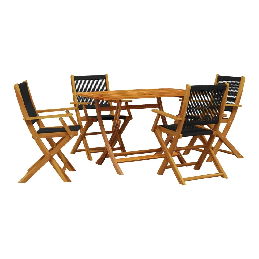 Cet ensemble de salle à manger de jardin est un excellent choix pour les repas en plein air ou pour vous détendre dans le jardin, dans l'arrière-cour ou sur la terrasse. Robuste et stable : le bois d'acacia massif est connu pour sa solidité et sa durabilité. Ses couleurs variées et ses grains uniques lui confèrent un aspect attrayant. Sa stabilité et sa résistance aux intempéries en font un matériau idéal pour la fabrication de meubles d'intérieur et d'extérieur.Conception pratique : la main courante en bois, pratique et plate, vous permet de poser vos mains dessus tout en profitant d'un moment en plein air.Dessus de table robuste : la table d'extérieur offre un excellent support pour accueillir vos boissons, collations, corbeilles de fruits et vos décorations préférées.Design pliable : la table et les chaises de salle à manger d'extérieur peuvent être facilement repliées lorsqu'elles ne sont pas utilisées pour faciliter le rangement et le transport. Bon à savoir :Pour que vos meubles d'extérieur restent beaux, nous vous recommandons de les protéger avec une housse imperméable.