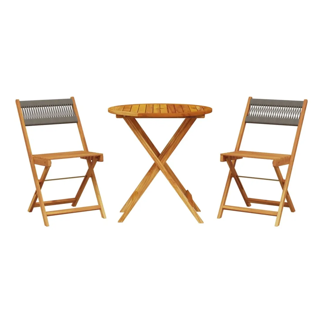 Savourez une tasse de café ou discutez avec votre famille et vos amis dans le jardin, l'arrière-cour ou sur le balcon avec cet ensemble de bistro ! Robuste et stable : le bois d'acacia massif est connu pour sa solidité et sa durabilité. Ses couleurs variées et ses grains uniques lui confèrent un aspect attrayant. Sa stabilité et sa résistance aux intempéries en font un matériau idéal pour la fabrication de meubles d'intérieur et d'extérieur.Conception pratique : la chaise d'extérieur ne comporte pas d'accoudoir, mais uniquement un dossier, ce qui vous permet d'être plus libre de vos mouvements tout en bénéficiant d'un grand confort.Dessus de table robuste : la table d'extérieur offre un excellent support pour accueillir vos boissons, collations, corbeilles de fruits et vos décorations préférées.Design pliable : la table et les chaises de salle à manger d'extérieur peuvent être facilement repliées lorsqu'elles ne sont pas utilisées pour faciliter le rangement et le transport. Bon à savoir :Pour que vos meubles d'extérieur restent beaux, nous vous recommandons de les protéger avec une housse imperméable.