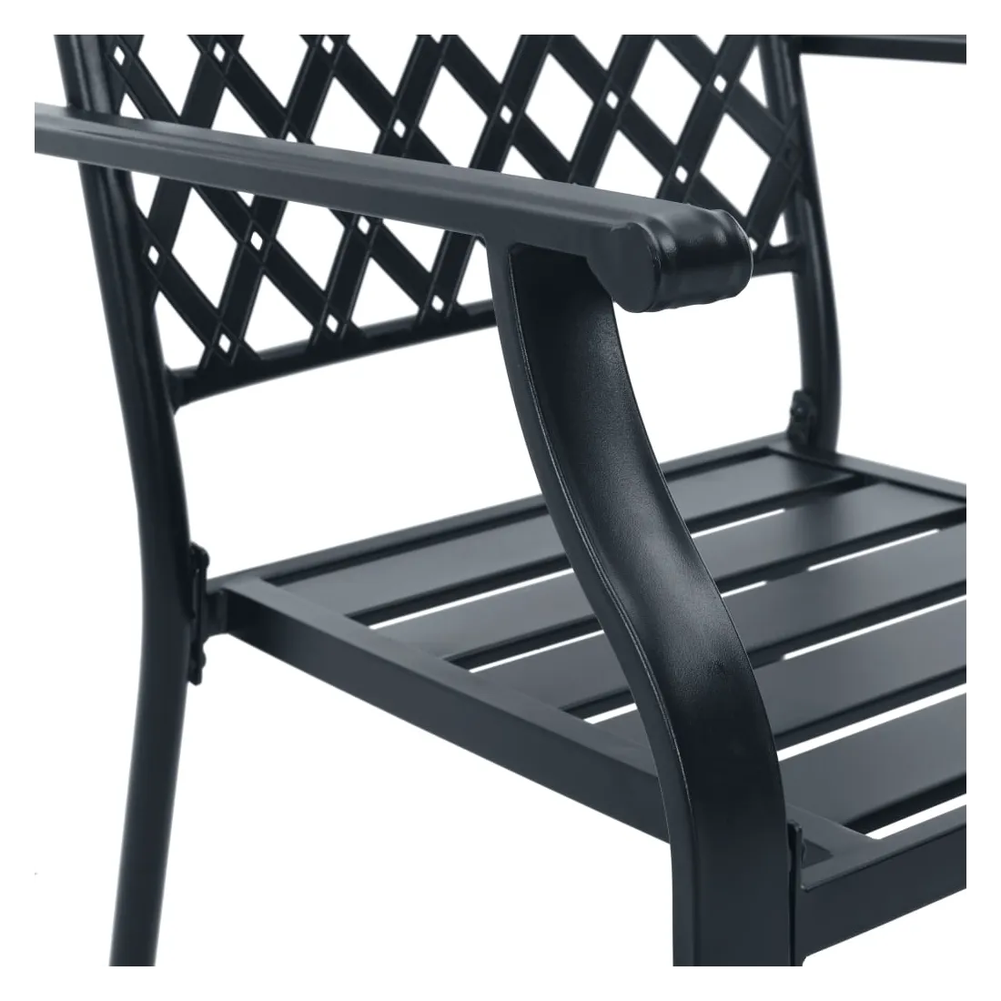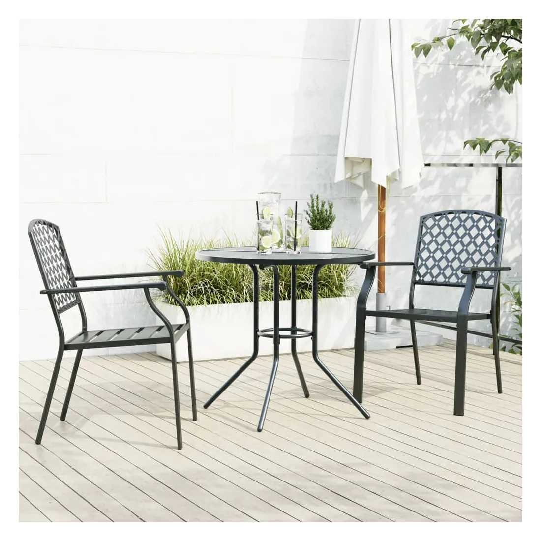 Cet ensemble de chaises de jardin avec un look élégant est un supplément frappant à votre espace de vie actuel, à l'extérieur ainsi qu'à l'intérieur. Acier enduit de poudre : cet ensemble de bar de jardin est fabriqué en acier enduit de poudre, un matériau exceptionnellement dur et solide. Elle offre robustesse et stabilité. Le revêtement en poudre de la surface de l'acier crée une couche protectrice contre la rouille, la corrosion et l'usure.Design pratique : ces chaises de bistrot sont dotées de dossiers qui vous offrent un confort supplémentaire et vous permettent de vous asseoir confortablement sur les chaises.Fonction empilable : la conception empilable des chaises permet d'économiser de l'espace.Dessus de table en maille : le dessus de table en maille présente de jolis motifs et convient pour placer des boissons, de la nourriture et d'autres articles essentiels.Multifonctionnel : cet ensemble de chaises d'extérieur multifonctionnel présente une forme parfaite pour s'adapter à tous les environnements de votre maison. Il peut être utilisé dans la cuisine, la salle à manger, le salon, le patio, etc.