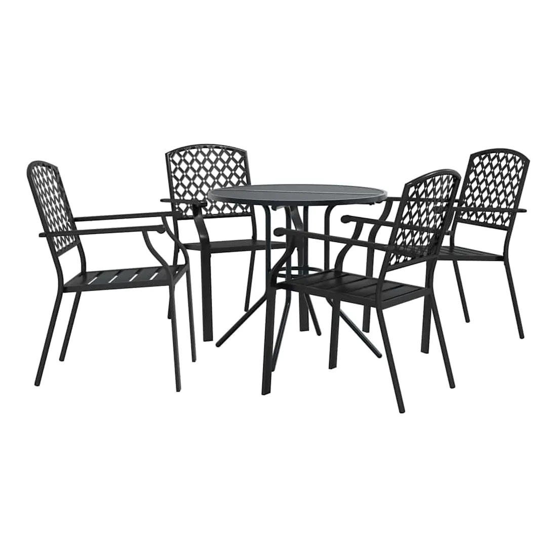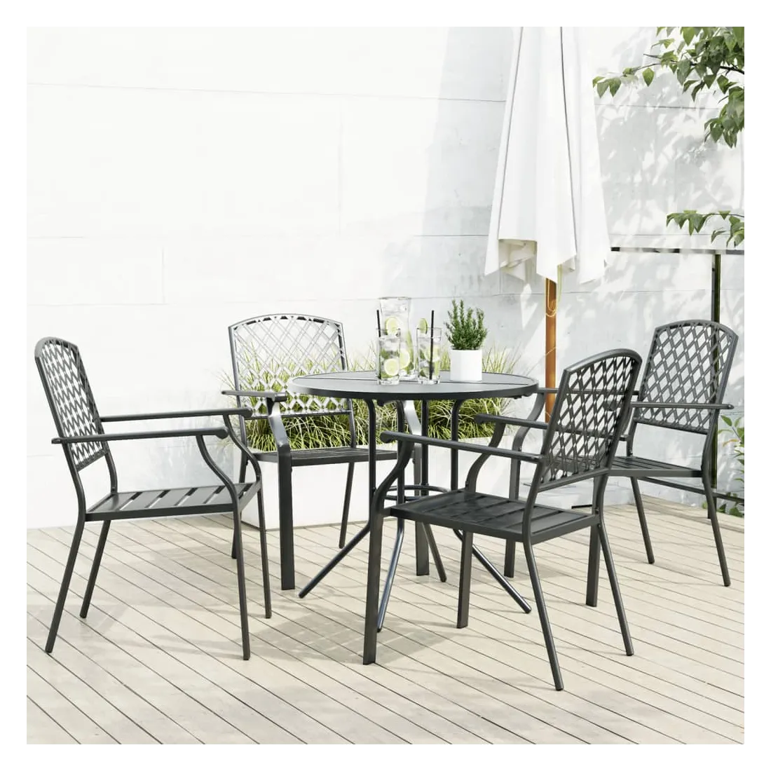 Cet ensemble de chaises de jardin avec un look élégant est un supplément frappant à votre espace de vie actuel, à l'extérieur ainsi qu'à l'intérieur. Acier enduit de poudre : cet ensemble de bar de jardin est fabriqué en acier enduit de poudre, un matériau exceptionnellement dur et solide. Elle offre robustesse et stabilité. Le revêtement en poudre de la surface de l'acier crée une couche protectrice contre la rouille, la corrosion et l'usure.Design pratique : ces chaises de bistrot sont dotées de dossiers qui vous offrent un confort supplémentaire et vous permettent de vous asseoir confortablement sur les chaises.Fonction empilable : la conception empilable des chaises permet d'économiser de l'espace.Dessus de table en maille : le dessus de table en maille présente de jolis motifs et convient pour placer des boissons, de la nourriture et d'autres articles essentiels.Multifonctionnel : cet ensemble de chaises d'extérieur multifonctionnel présente une forme parfaite pour s'adapter à tous les environnements de votre maison. Il peut être utilisé dans la cuisine, la salle à manger, le salon, le patio, etc.