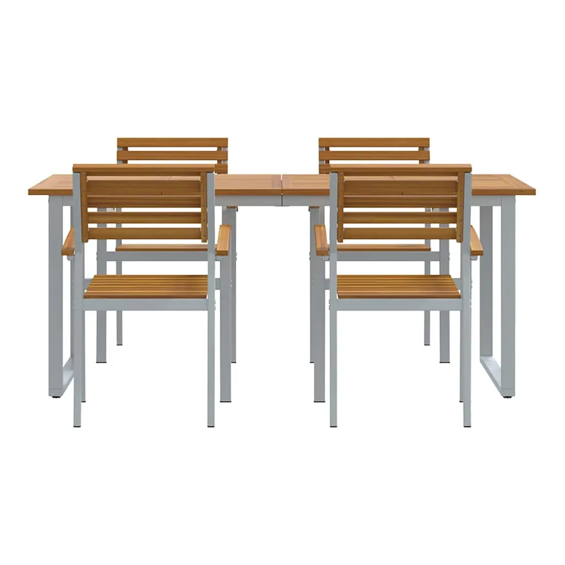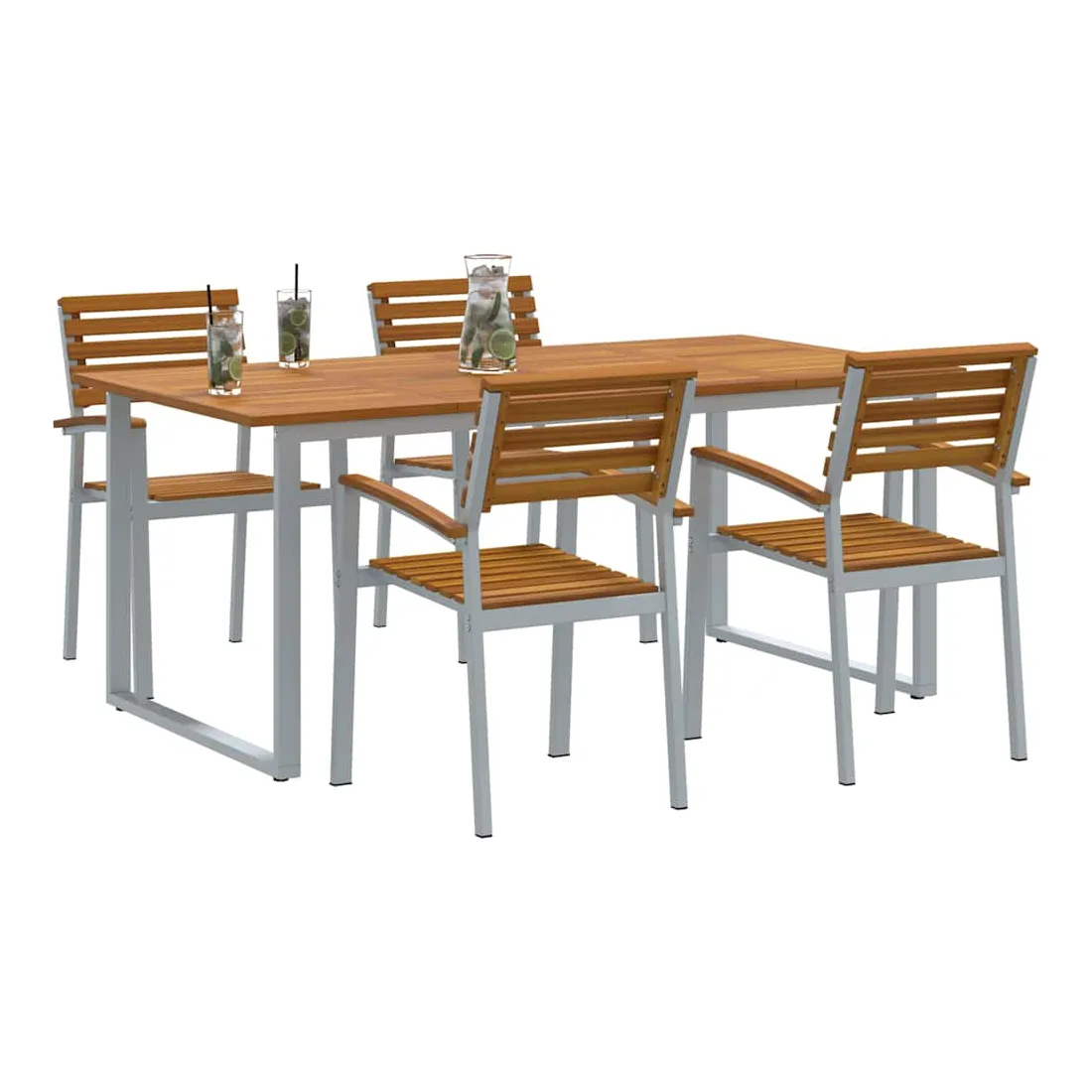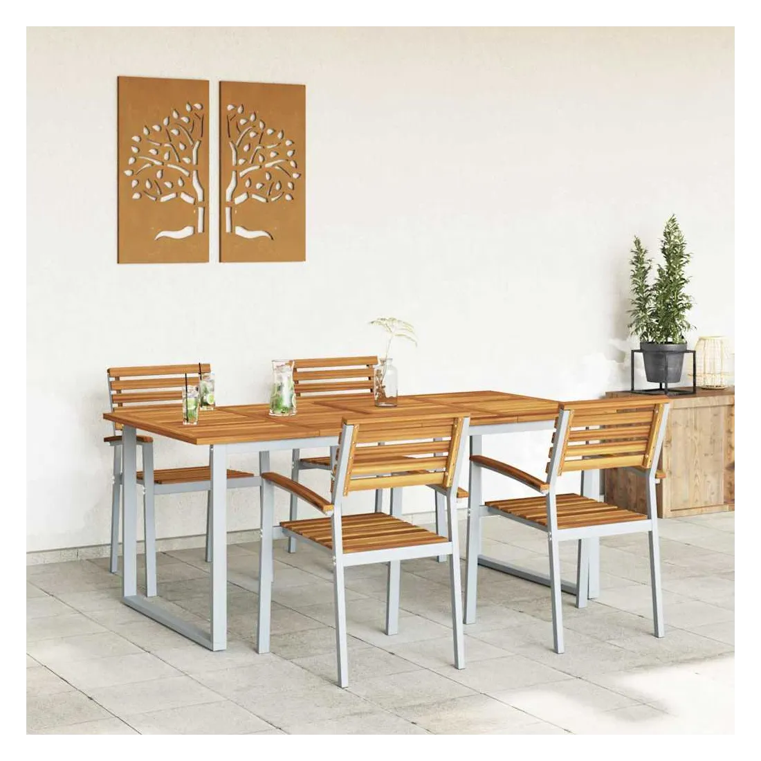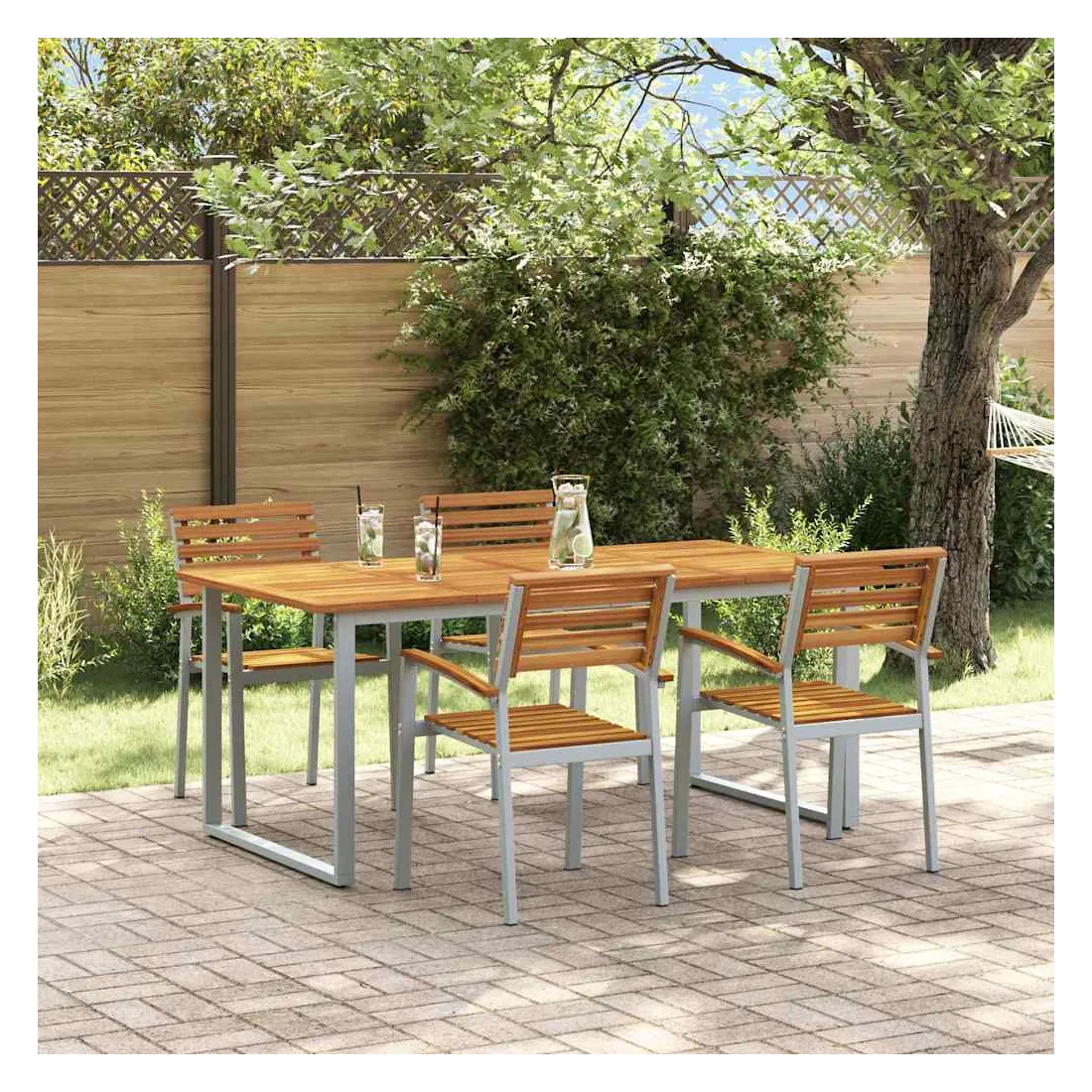 Ce set de jardin est un élément incontournable pour vos soirées en extérieur, avec son design moderne, ses lignes nettes et sa fonctionnalité. Sa forme rectangulaire permet beaucoup de places assises, créant l'ambiance idéale pour des repas entre amis ou en famille. Bois d'acacia massif : Ce set est fait en bois d'acacia massif, ajoutant une touche naturelle et chaleureuse à votre espace extérieur. Ce matériau est durable et robuste, parfait pour résister aux aléas du temps tout en restant joli dans différents environnements. Cadre en acier robuste : Avec son cadre en acier, ce set est super solide et bien supporté. Il est conçu pour tenir le coup, même avec une utilisation régulière et des repas chargés. Finition soignée : Le dos a l'air impeccable, ce qui complète le style moderne. Cela rend le meuble super pratique et agréable à voir dans votre jardin. Entretien facile : Avec des instructions simples, cet ensemble ne demande pas beaucoup d'entretien. Un coup de chiffon sec sur le bois d'acacia et le métal suffit pour garder tout ça en super état. Accoudoirs stylés : Les accoudoirs en bois d'acacia ajoutent une touche de chaleur et d'élégance. Confortables, ils sont parfaits pour des repas relaxants et vont super bien avec vos jardins modernes. Ils apportent aussi un petit côté naturel à votre extérieur.