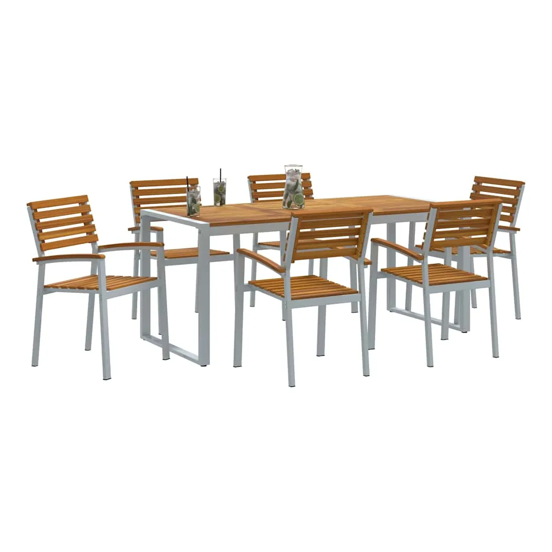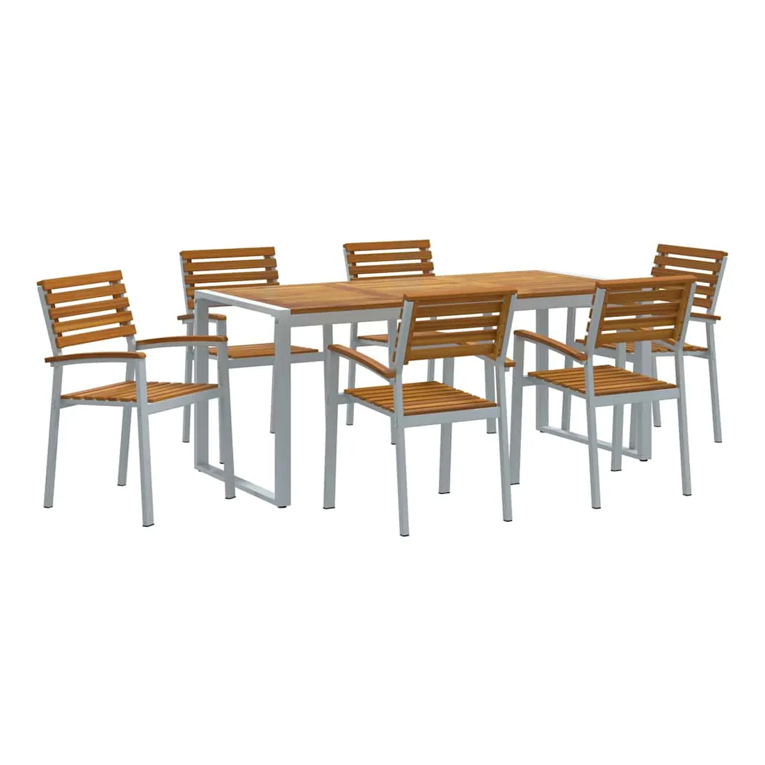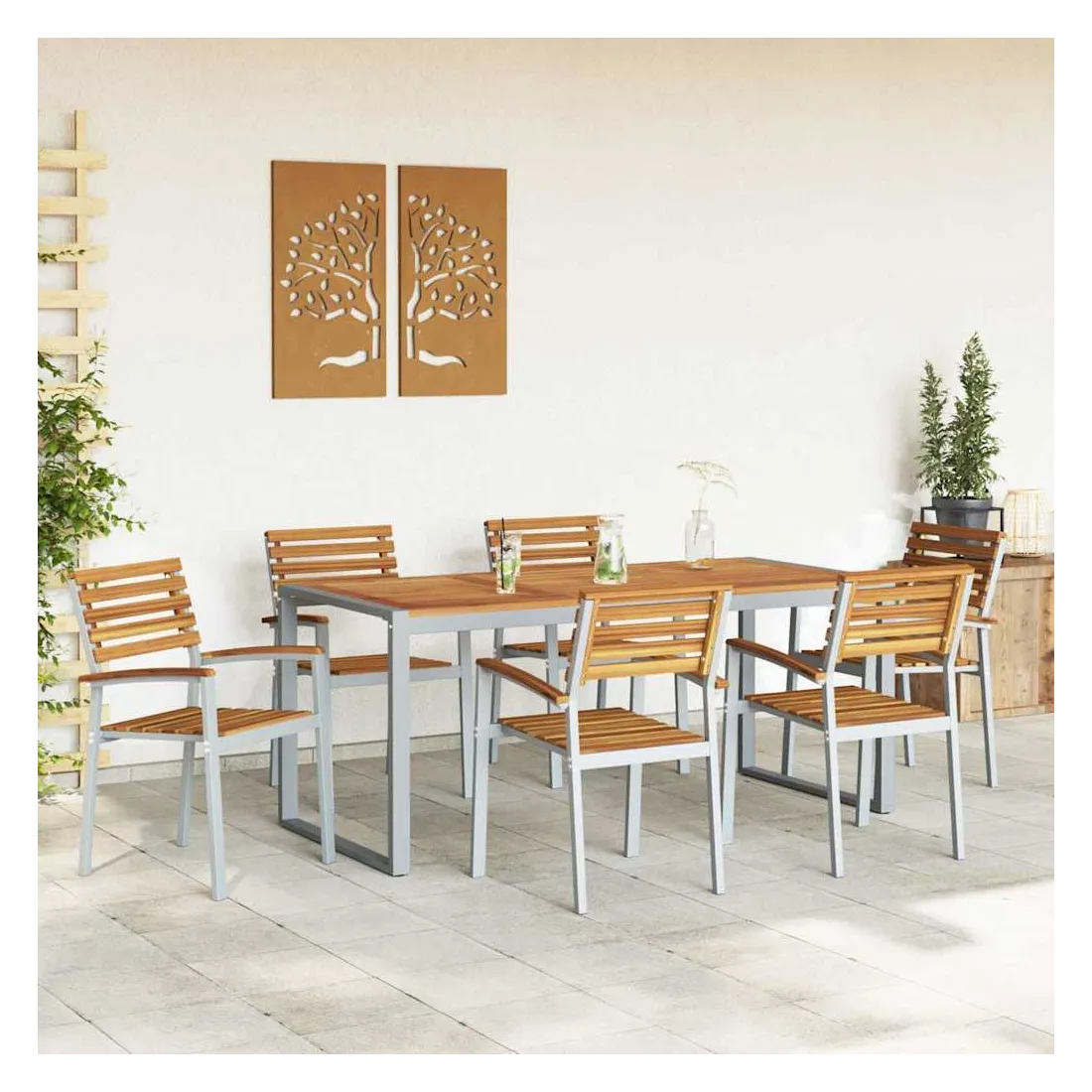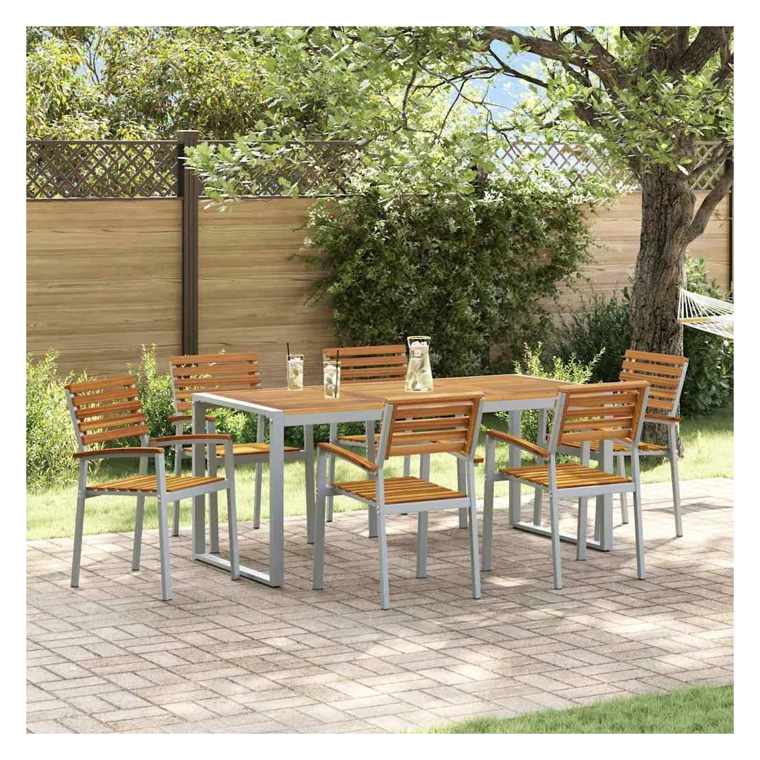 Ce set de salle à manger pour le jardin est stylish et tout en modernité. Il est fait pour les brunchs du dimanche ou les dîners plus formels. Fabriqué en bois d'acacia et en acier, il est robuste. Sa forme rectangulaire et ses couleurs chic sont idéales pour les jardins modernes, créant une ambiance chaleureuse pour des retrouvailles en famille ou entre amis. Matériaux : Fait en bois d'acacia de première qualité, qui est super beau et super résistant. Cet ensemble assure une excellent structure et un aspect naturel qui ira bien avec ton jardin. Les parties en acier ajoutent une touche de solidité, parfait pour une utilisation quotidienne. Composants Inclus : Avec une finition lisse, ce set a une grande table en acacia qui peut facilement accueillir six personnes. Les accoudoirs et le dos confortable ajoutent un petit plus pour des repas agréables en pleine nature. Fonctionnalités /Fonction /Design : Avec son style moderne, cet ensemble a des lignes simples qui le rendent esthétique et pratique. Chaque pièce est bien fabriquée, ce qui en fait un excellent choix pour ton espace extérieur. Utilisations Recommandées : Parfait pour les jardins et terrasses, il s'adapte à différents endroits. Idéal pour des brunchs, dîners ou rencontres tranquilles. Entretien &Maintenance : Pratique à entretenir, il suffit d'un chiffon pour enlever la poussière et le garder en bon état. Suivre ces conseils te permettra de le garder beau toute l'année.