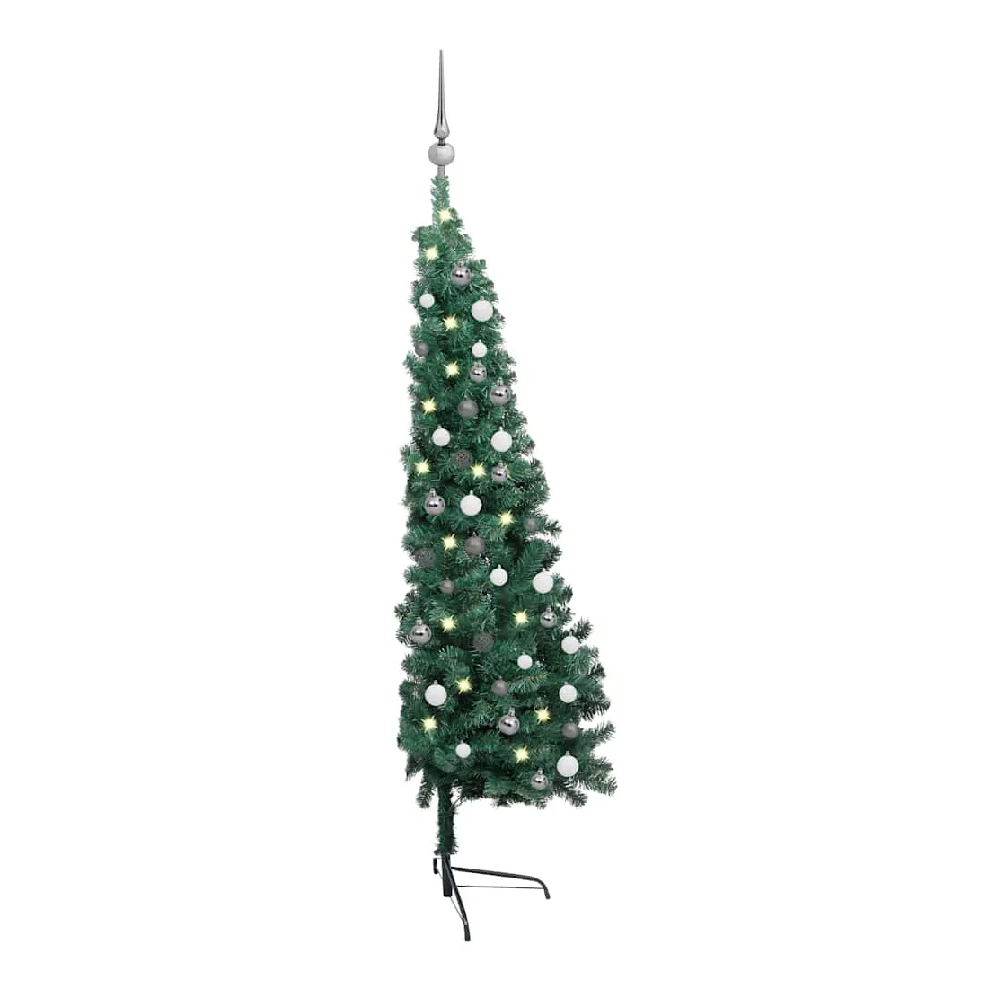 vidaXLCe demi-sapin de Noël artificiel forme la pièce maîtresse de vos décorations de Noël, créant une ambiance de Noël unique ! Ce magnifique sapin de Noël en PVC est très réaliste dans sa forme et son apparence. Les pieds en acier ajoutent à sa stabilité. Cet arbre artificiel peut être placé contre le mur pour économiser plus d'espace. L'arbre de Noël peut également être réutilisé chaque année, ce qui en fait un choix très économique par rapport à un vrai arbre. Doté de lumières LED éconergétiques, il éclaire magnifiquement et crée une ambiance de vacances confortable. De plus, décoré d'un magnifique pic et de boules, cet arbre de Noël attirera tous les regards dans votre maison. Remarque : ce produit est doté d'un connecteur USB, mais la source d'alimentation certifiée de USB 5V n'est pas incluse.