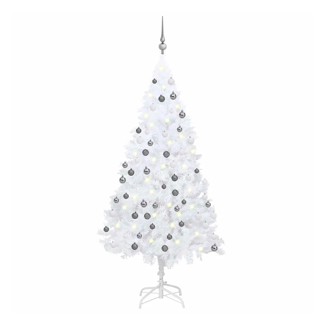 Arbre de Noël artificiel pré-éclairé et boules blanc 120 cm PVC