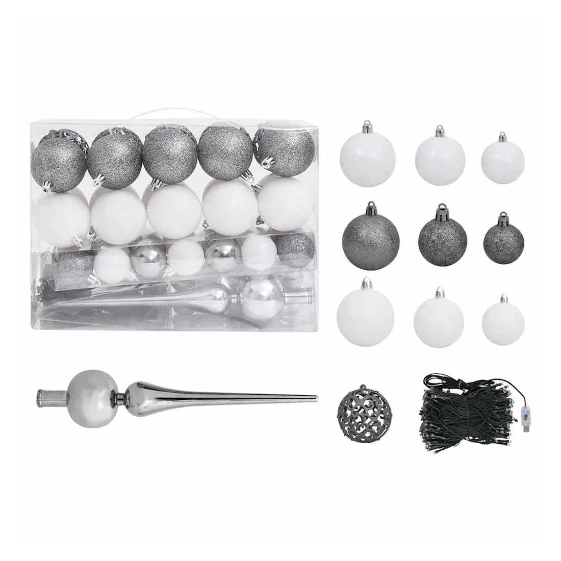 Ce bel arbre de Noël artificiel est très réaliste par sa forme et son apparence et créera l’ambiance idéale pour ce prochain Noël. Cet arbre réaliste possède des branches en PE en forme d’aiguille réalistes, obtenues par moulage par injection. Il est léger, résistant aux intempéries et durable. Ce bel arbre de Noël est résistant à l'eau. Les branches à aiguilles peuvent être arrangées dans n'importe quelle forme. Cet arbre de Noël peut être utilisé chaque année, ce qui en fait un choix très économique par rapport à un vrai arbre. Il a également une base en acier pour stabilité. Doté de lumières LED éconergétiques, il éclaire magnifiquement et crée une ambiance de vacances agréable. De plus, décoré du magnifique pic et des boules, ce sapin de Noël attirera tous les regards dans votre ma