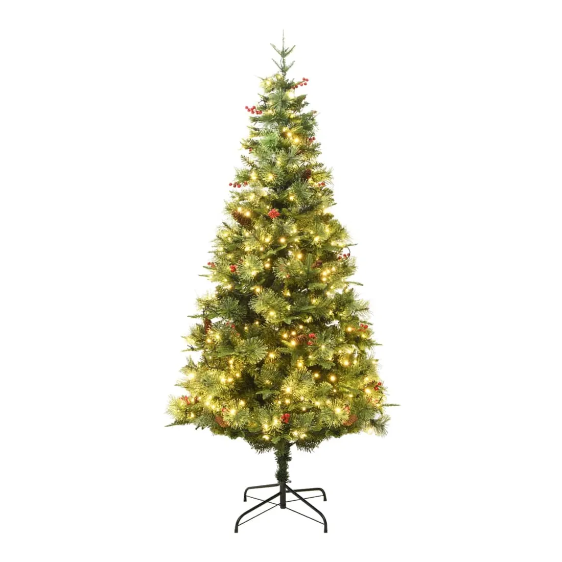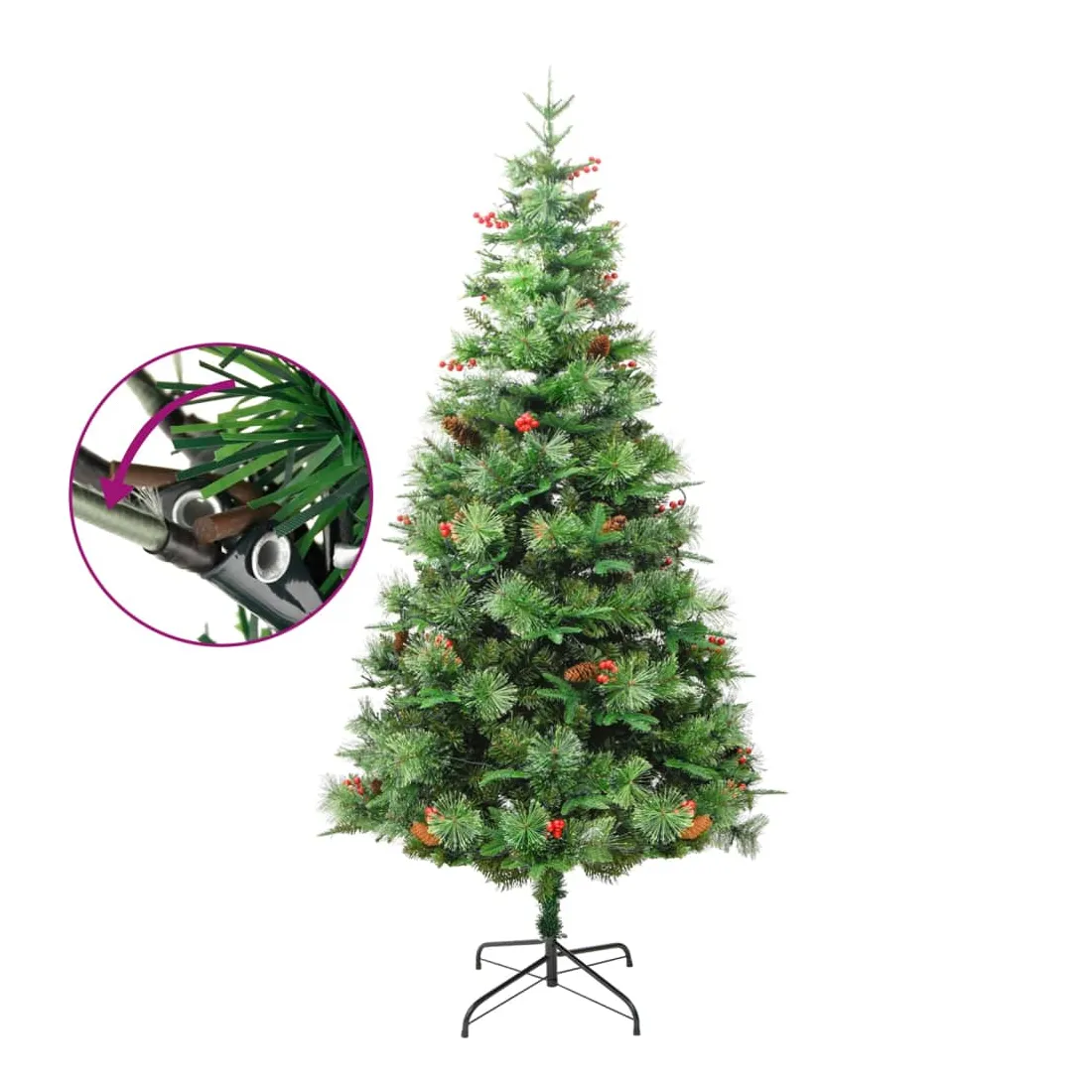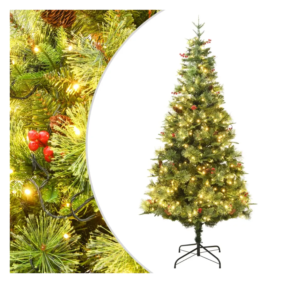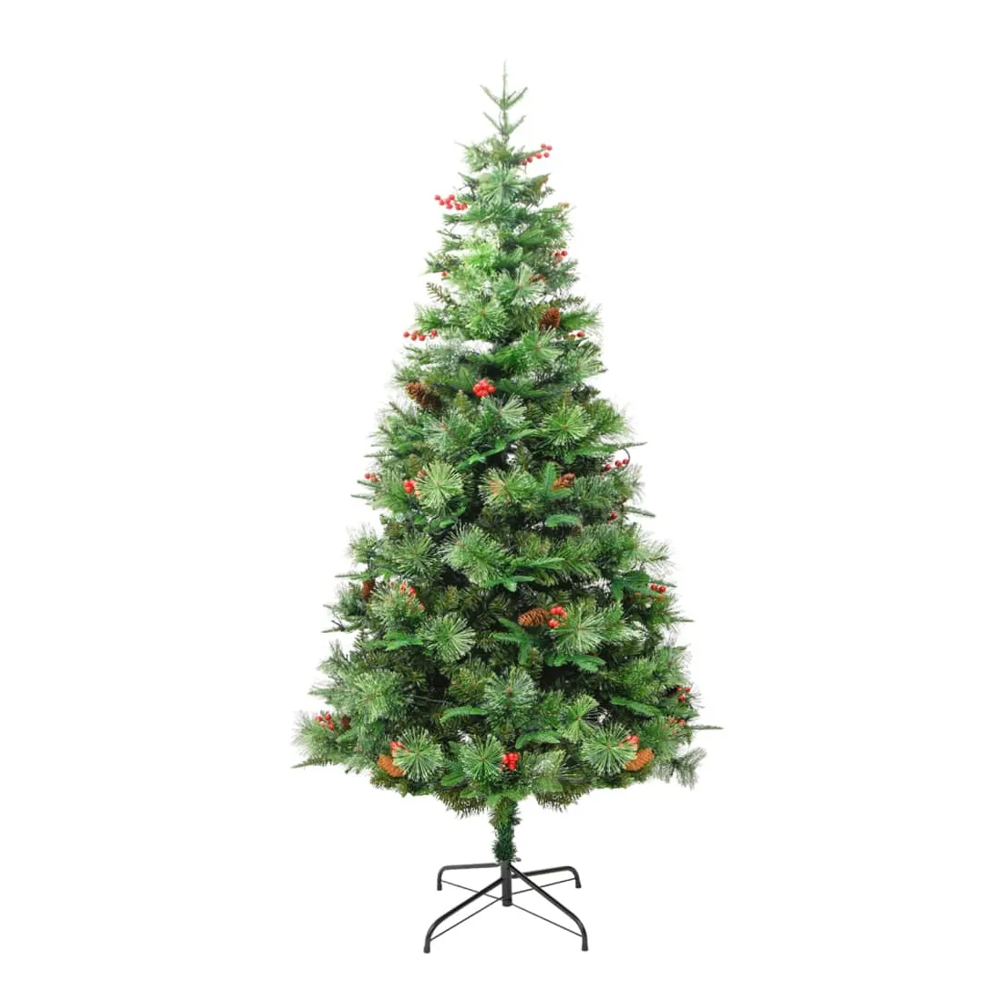 Sapin de Noël pré-éclairé et pommes de pin vert 225cm PVC et PE