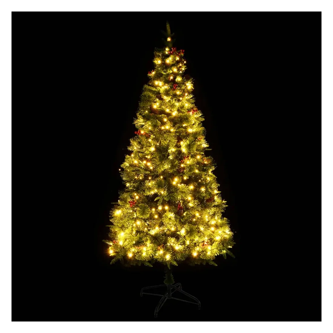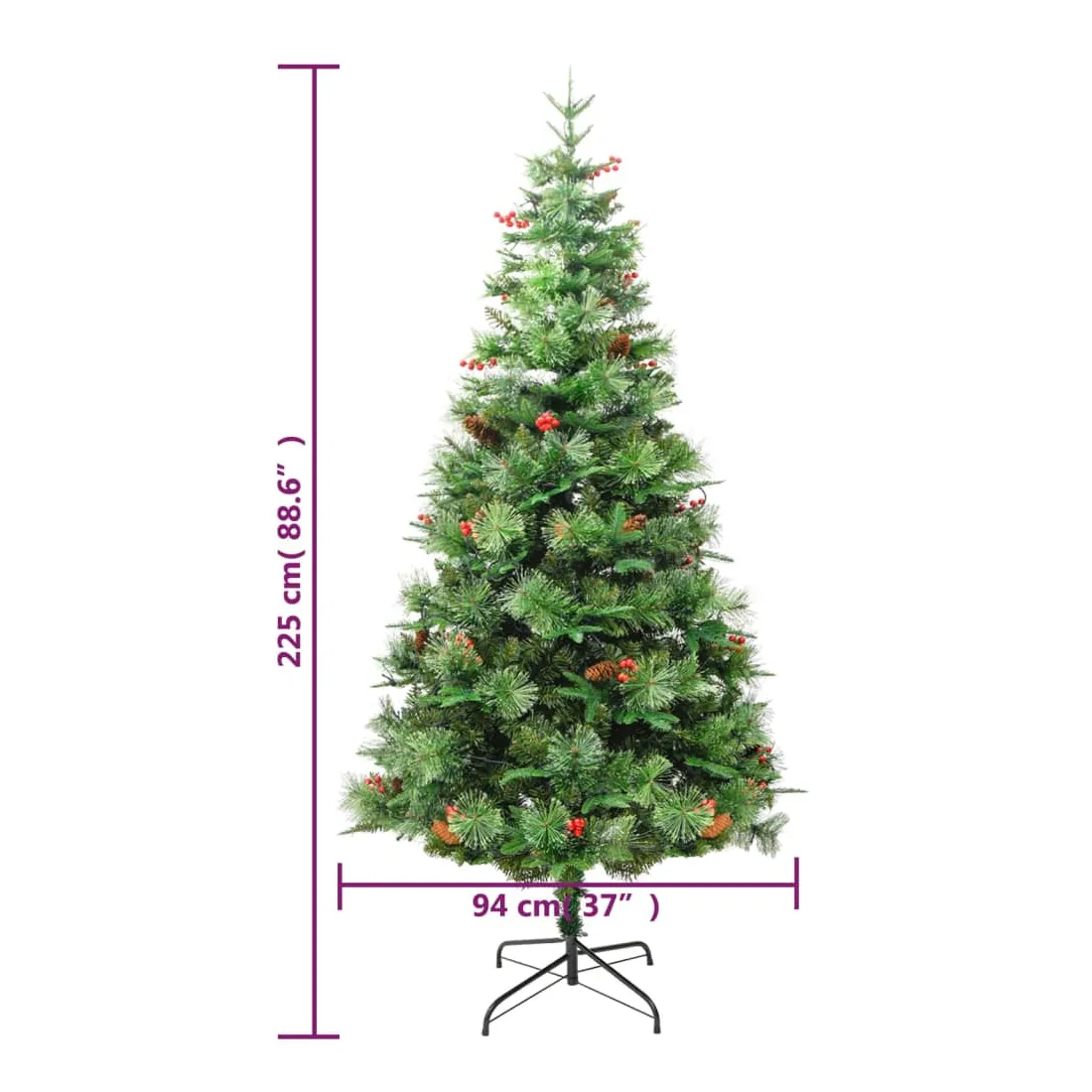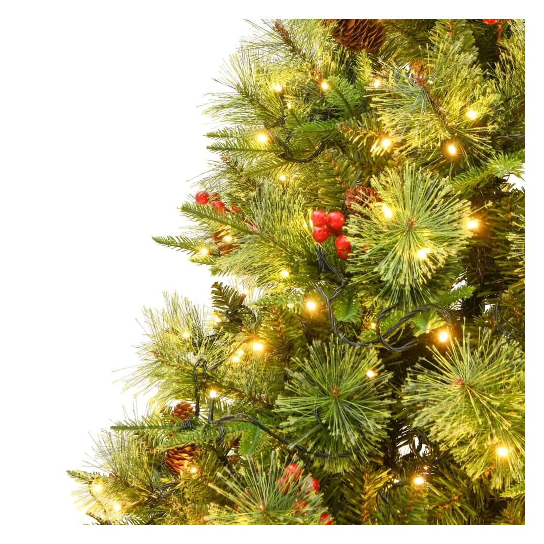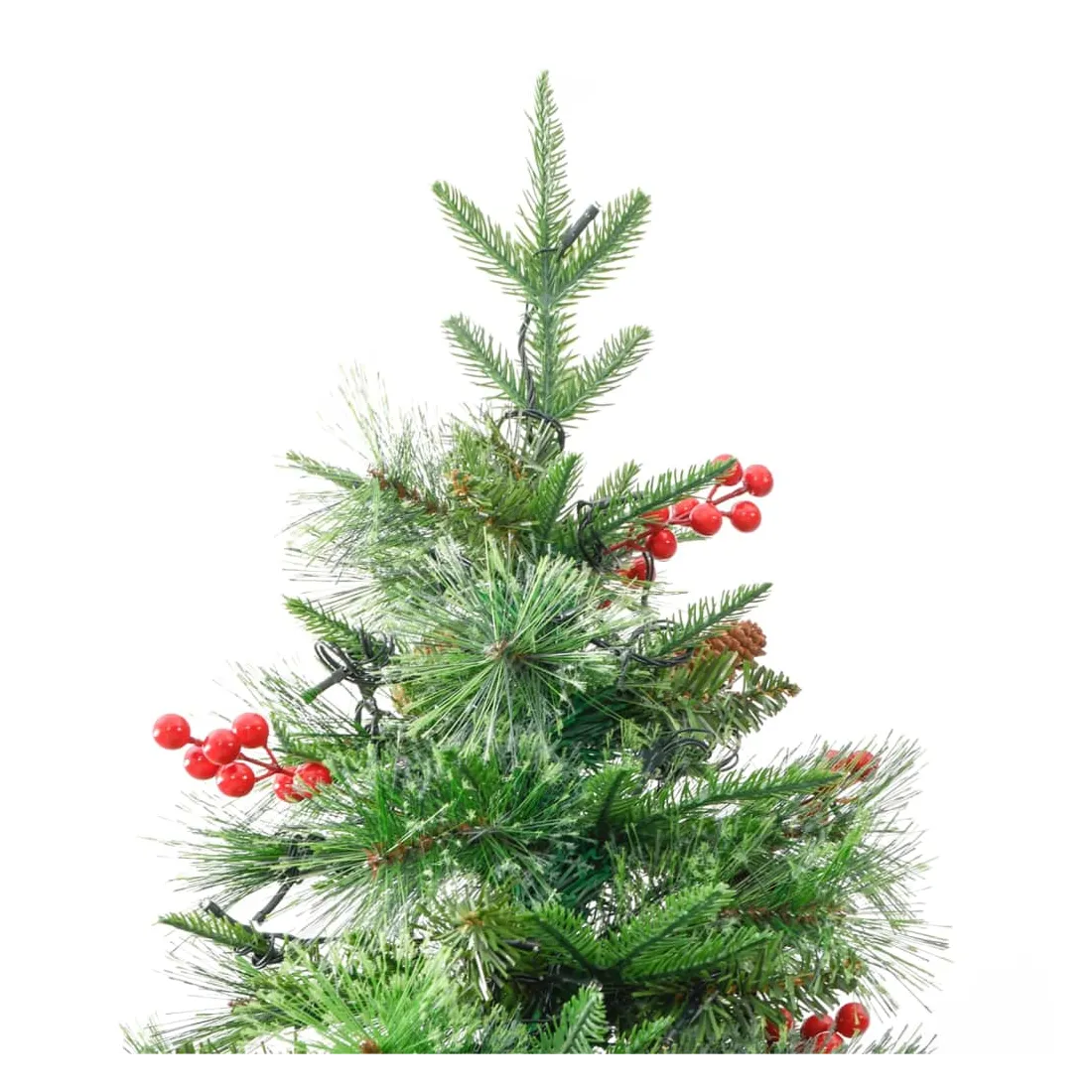 Sapin de Noël pré-éclairé et pommes de pin vert 225cm PVC et PE