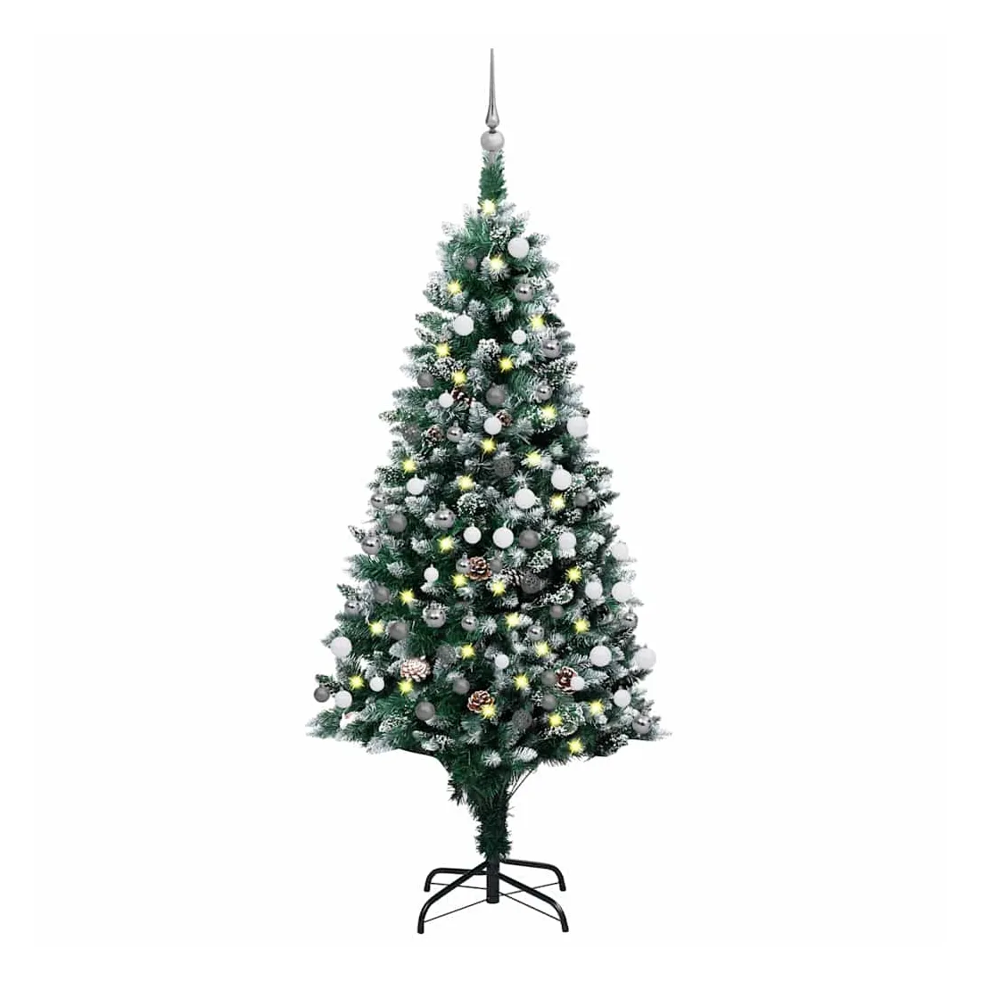 vidaXLCe bel arbre de Noël artificiel est très réaliste par sa forme et son apparence et est destiné à créer l’ambiance idéale pour ce Noël. L'arbre de Noël a des branches pointues avec de la neige blanche sur les pointes ; l'apparence est donc extrêmement dense. Les branches à aiguilles et les pommes de pin inclus peuvent être disposés dans n’importe quelle forme. Cet arbre de Noël peut être utilisé chaque année, ce qui en fait un choix très économique par rapport à un véritable arbre. Il a également une base en métal pour la stabilité. Doté de lumières LED éconergétiques, il éclaire magnifiquement et crée une ambiance de vacances agréable. De plus, décoré d'une magnifique pointe et de boules, ce sapin de Noël attirera tous les regards dans votre maison. Amusez-vous pendant les fêtes autour de ce joli sapin de Noël ! Remarque : ce produit est doté d'un connecteur USB, mais la source d'alimentation certifiée de USB 5V n'est pas incluse.