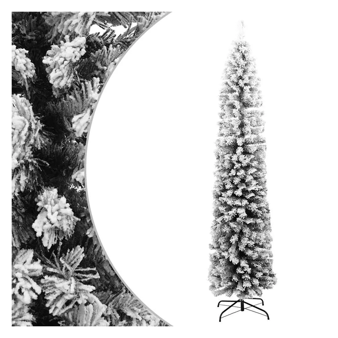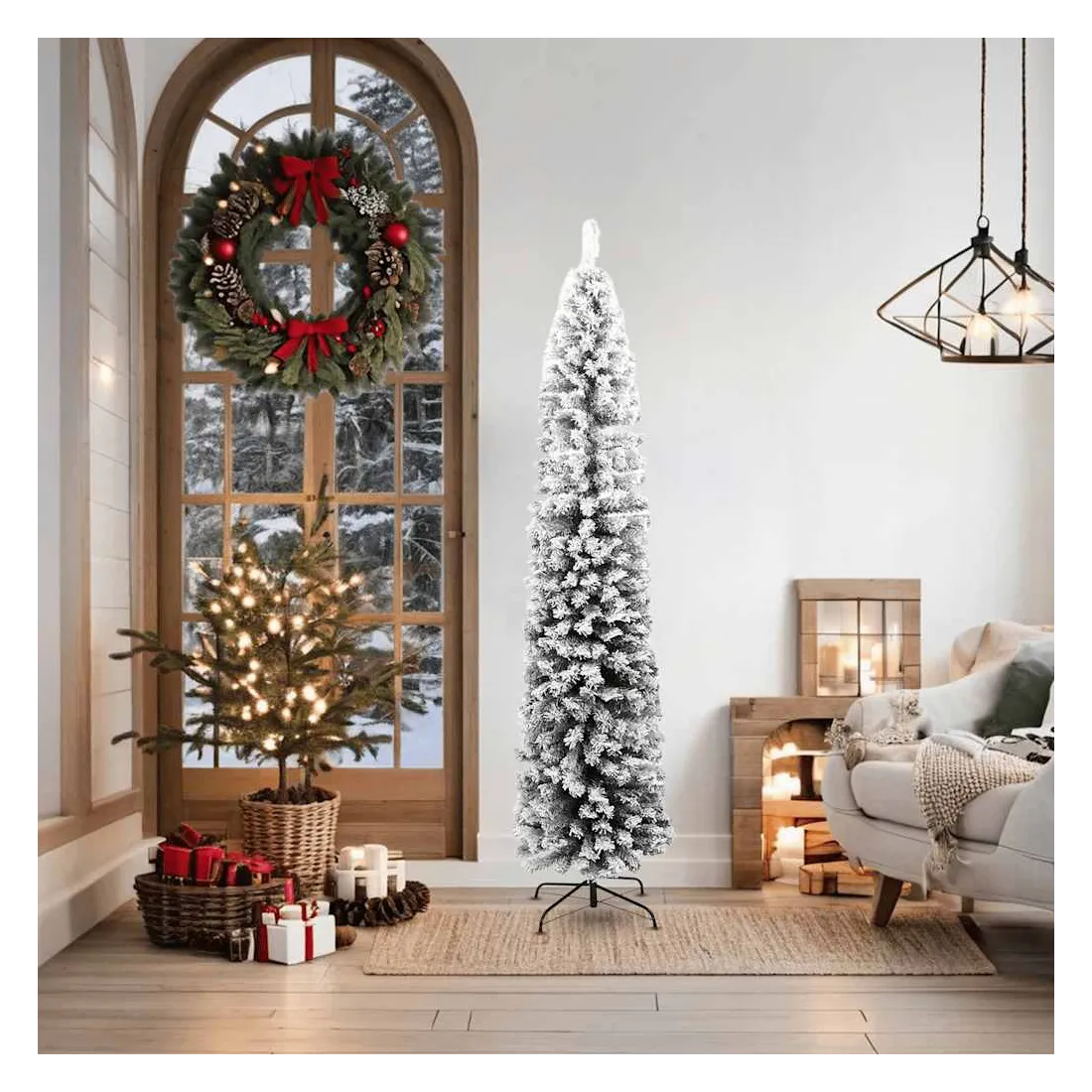 Notre sapin de Noël artificiel mince, avec de la neige blanche floquée, forme la pièce maîtresse de vos décorations de Noël, créant une ambiance de Noël unique ! Ce magnifique sapin de Noël en PVC est très réaliste dans sa forme et son apparence. Les pieds en acier ajoutent à sa stabilité. L'arbre de Noël peut être réutilisé chaque année, ce qui en fait un choix très économique par rapport à un vrai arbre. De plus, il peut être utilisé à l'intérieur ainsi qu'à l'extérieur sous abri.