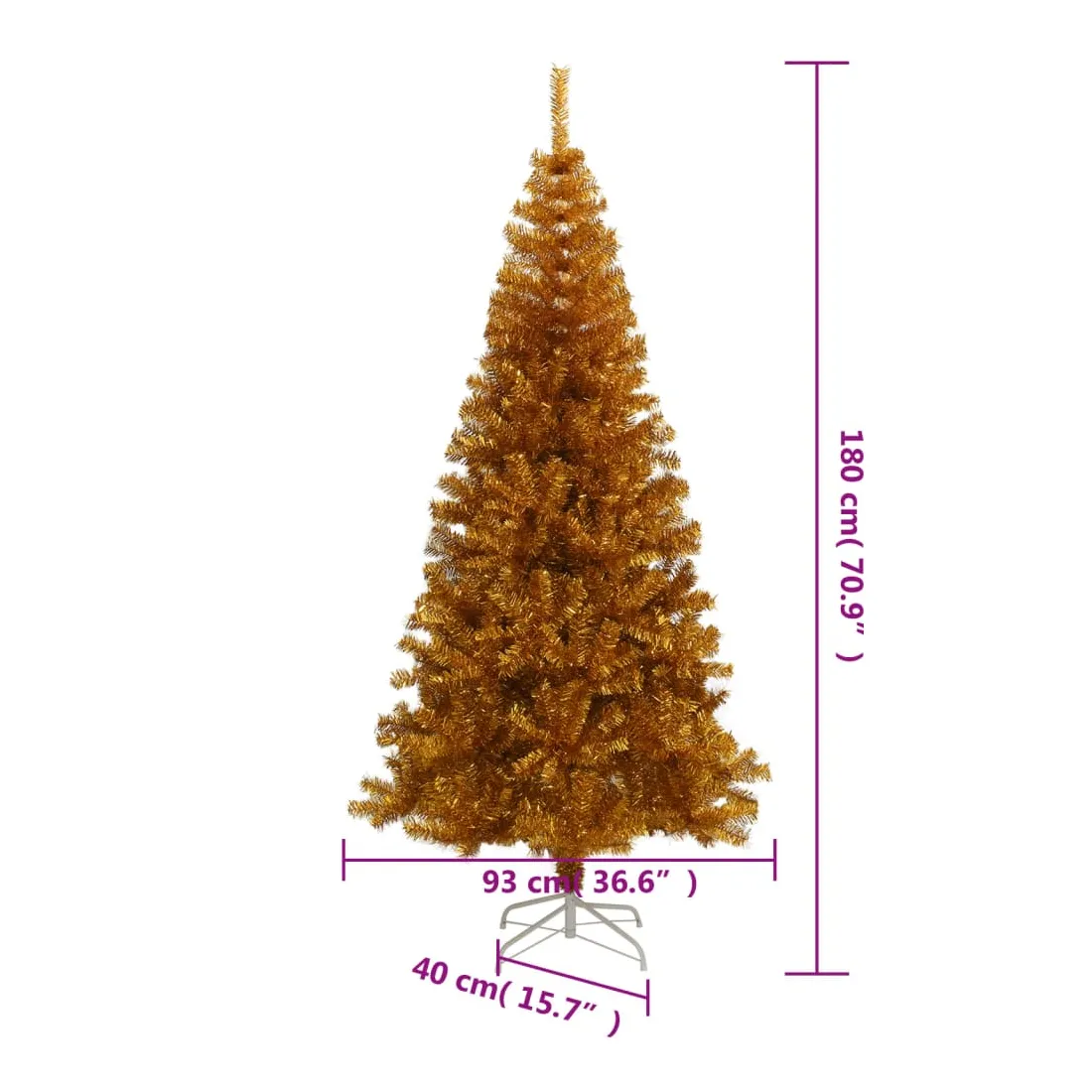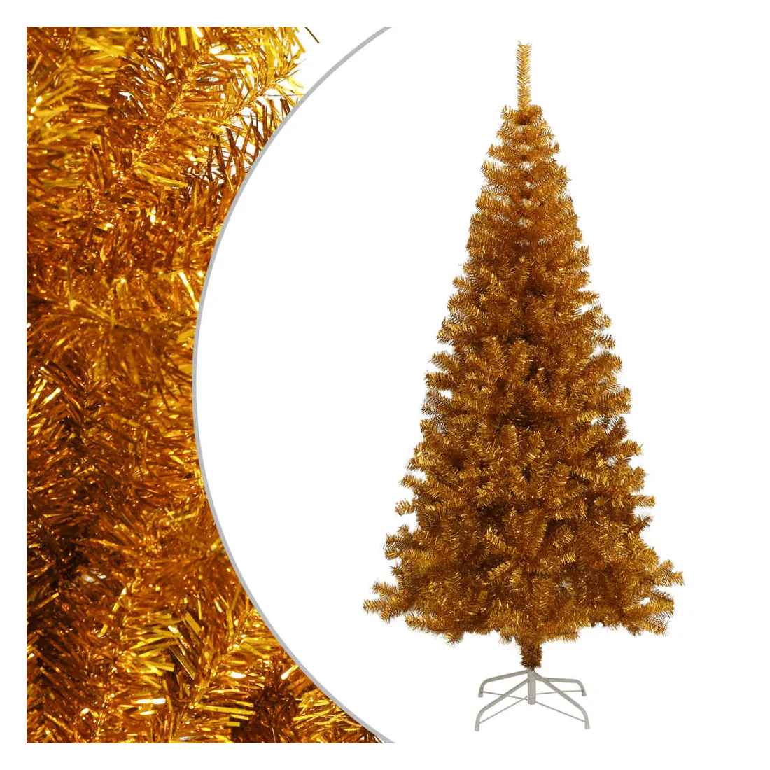 Notre sapin de Noël artificiel doré brillant forme la pièce maîtresse de vos décorations de Noël, créant une ambiance de Noël unique ! Ce magnifique sapin de Noël en PET est très réaliste dans sa forme et son apparence. Les pieds en acier ajoutent à sa stabilité. L'arbre de Noël peut être réutilisé chaque année, ce qui en fait un choix très économique par rapport à un vrai arbre. De plus, il peut être utilisé à l'intérieur ainsi qu'à l'extérieur sous abri.