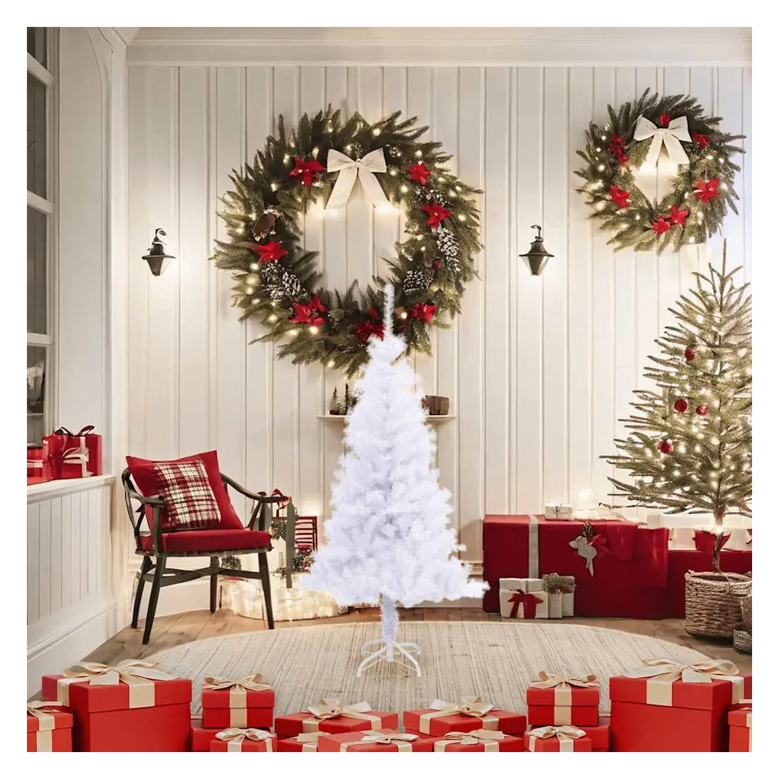 Cet arbre de Noël magnifique et épais avec 230 branches ressemble comme s'il est recouvert d'une épaisse couverture de neige. Cet arbre de Noël blanc pur constituera la pièce de résistance frappante de vos décorations de Noël. Fait en PVC de qualité, il ressemble à un arbre de Noël véritable. L'arbre de Noël peut être utilisé à nouveau chaque année, ce qui en fait un choix très économique par rapport à un arbre réel. Il peut être utilisé tant à l'intérieur qu'à l'extérieur sous abri. Cet arbre de Noël est facile à monter, grâce à son système à brancher simple. Créez une ambiance de Noël unique dans votre maison !