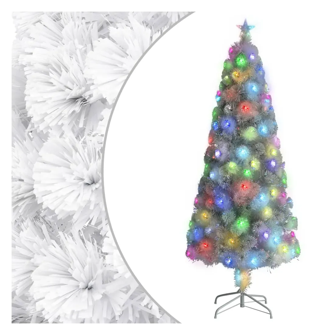 Ce magnifique arbre de Noël artificiel avec lumières LED et fibre de verre formera la pièce maîtresse frappante de vos décorations de Noël. Fabriqué en PVC et fibre optique, ce sapin de Noël artificiel est très réaliste dans sa forme et son apparence. Le sapin de Noël est équipé de 2 modes d’éclairage : LED et fibre optique. Et la lumière LED en forme d'étoile au sommet de l'arbre crée l'ambiance idéale pour le festival. Le support inclus assure à votre arbre une stabilité optimale. De plus, l'arbre de Noël peut être réutilisé chaque année, ce qui en fait un choix très économique par rapport à un vrai arbre.