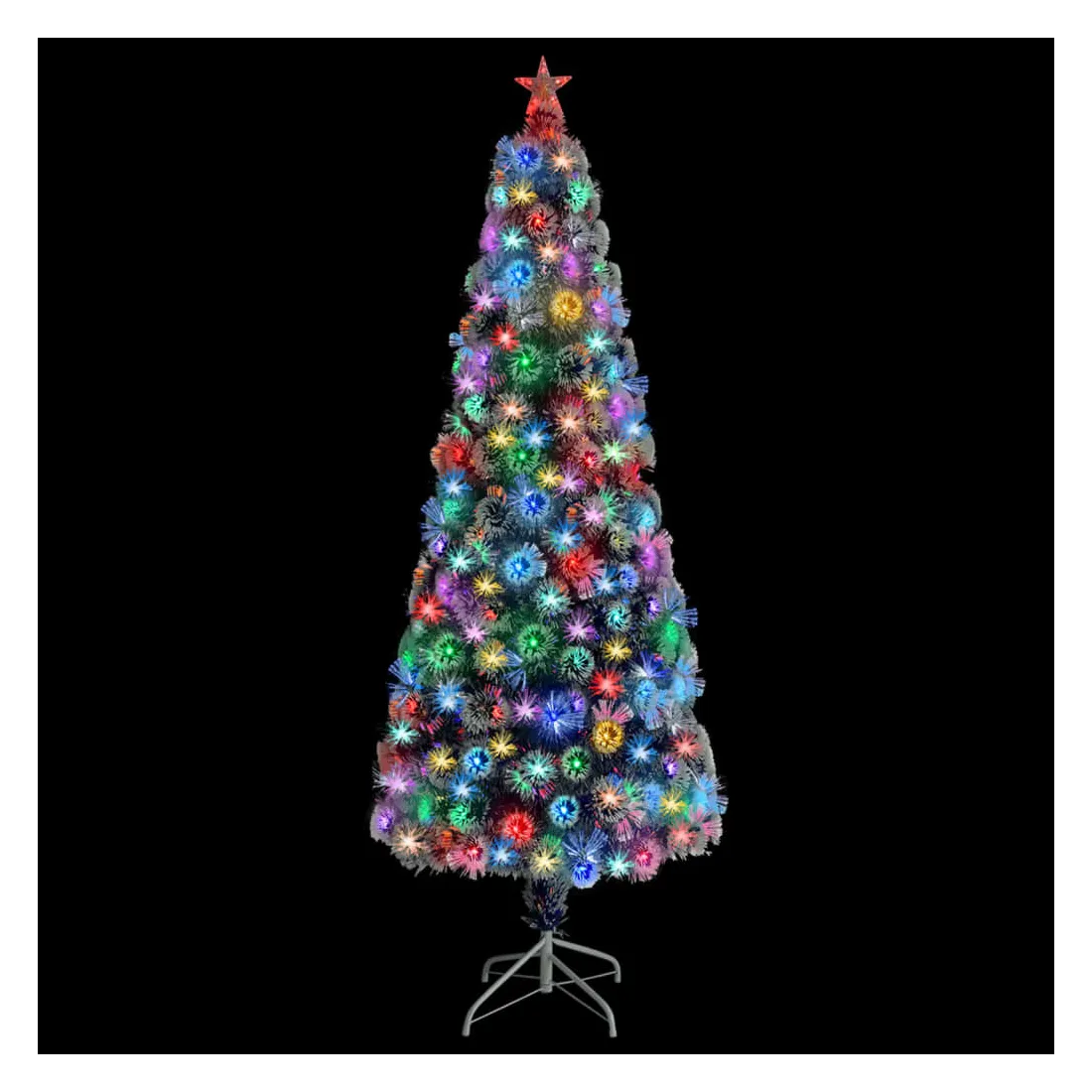 vidaXLCe magnifique arbre de Noël artificiel avec lumières LED et fibre de verre formera la pièce maîtresse frappante de vos décorations de Noël. Fabriqué en PVC et fibre optique, ce sapin de Noël artificiel est très réaliste dans sa forme et son apparence. Le sapin de Noël est équipé de 2 modes d’éclairage : LED et fibre optique. Et la lumière LED en forme d'étoile au sommet de l'arbre crée l'ambiance idéale pour le festival. Le support inclus assure à votre arbre une stabilité optimale. De plus, l'arbre de Noël peut être réutilisé chaque année, ce qui en fait un choix très économique par rapport à un vrai arbre.