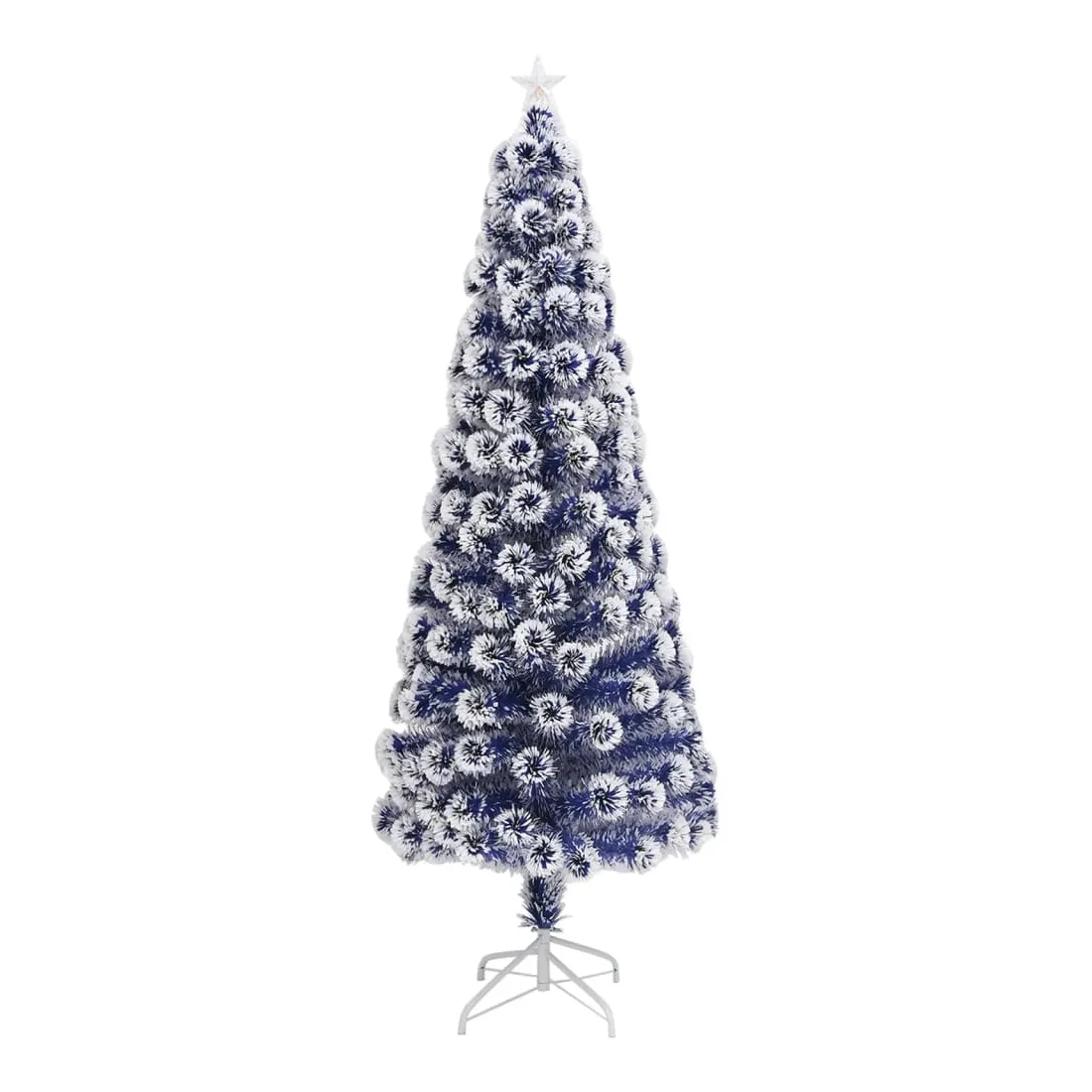 Arbre de Noël artificiel pré-éclairé blanc/bleu fibre optique