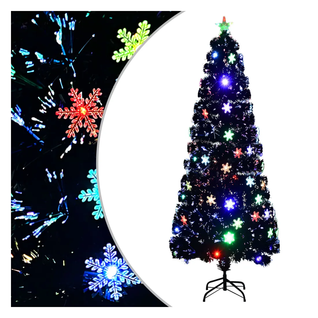 Créez une ambiance de vacances magique dans votre maison avec ce sapin de Noël artificiel avec des lumières LED et fibre optique colorées. Matériau réaliste : fabriqué en PVC et fibre optique, ce sapin de Noël est très réaliste dans sa forme et son apparence.Décoration de Noël lumineuse : le sapin de Noël est équipé de 2 modes d'éclairage : LED et fibre optique. Et la lumière LED en forme d'étoile à la cime de l'arbre crée l'ambiance idéale pour le festival.Support stable : le support inclus offre à votre arbre de Noël une stabilité optimale.Choix économique : la décoration des fêtes peut être réutilisée chaque année, ce qui en fait un choix très économique par rapport à un vrai sapin. Remarque :Chaque produit est livré avec un manuel de montage dans la boîte pour un montage facile.