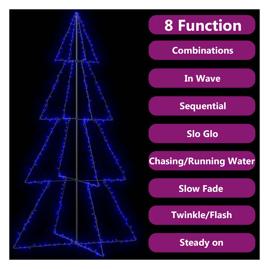 vidaXLCet arbre de Noël est spécialement conçu pour décorer votre arbre de Noël et créera l'atmosphère idéale pour votre Noël. Les lumières sont constituées de 360 LED haute puissance très efficaces en énergie et émettant une lumière brillante. Conçues avec 8 effets lumineux différents : une combinaison de tous les effets, l'éclairage lent, le scintillement/flash, la vague, la poursuite/le ruissellement de l'eau, le séquentiel, l'allumage permanent et le fondu lent, il s'illumine magnifiquement et crée une ambiance de vacances magique. Il attirera tous les regards, surtout le soir, et sert également de source confortable de lumière ambiante. L’arbre de Noël sous forme de cône autoportant peut être facilement et solidement fixé au sol avec le matériel de montage fourni. Remarque : l’USB inclus n’est pas étanche, donc cette partie doit éviter l’eau, mais grâce au câble de 5 m, l'arbre peut être utilisé à l'extérieur car le câble et le produit sont étanches. Ce produit est doté d'un connecteur USB, mais la source d'alimentation certifiée de USB 5V n'est pas incluse.