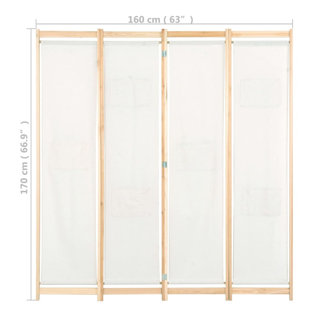 Cloison de séparation 4 panneaux Crème 160x170x4 cm Tissu