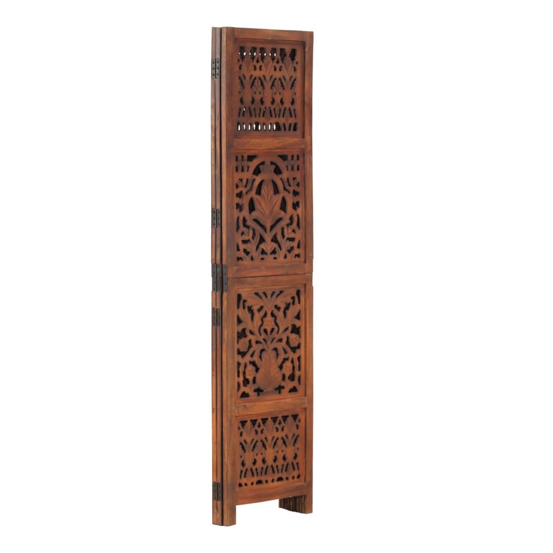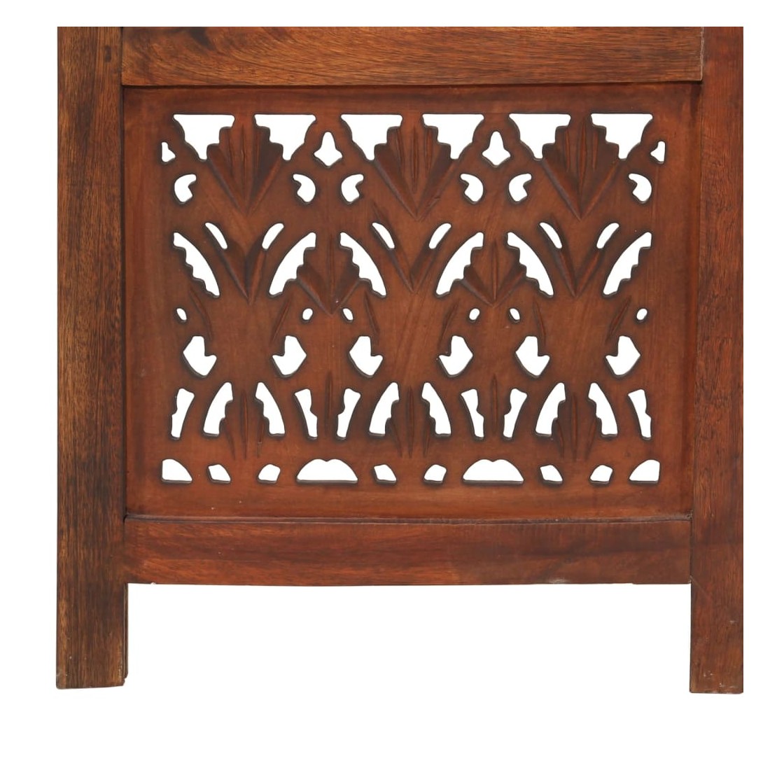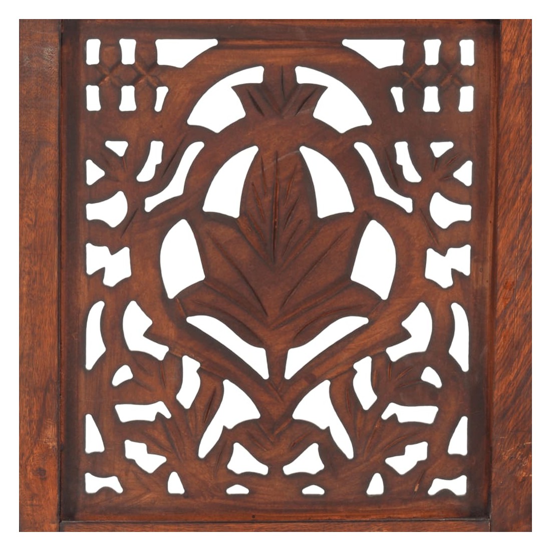 Ajoutez une touche élegante à votre intérieur avec notre magnifique cloison de séparation sculptée à la main ! Elle est parfaite à placer dans la chambre à coucher pour créer un dressing privé et séparé ou une section d'une partie d'une pièce. De plus, la cloison de séparation présente une construction en bois de manguier massif et est sculptée à la main avec de beaux motifs, ce qui augmente le charme moderne de l'écran d'intimité. Elle peut également être facilement pliée pour économiser de l'espace lorsqu'elle n'est pas utilisée. Le paravent est facile à assembler. Remarque : parce que le produit est fait à la main, de petites différences dans le motif et la couleur peuvent exister.