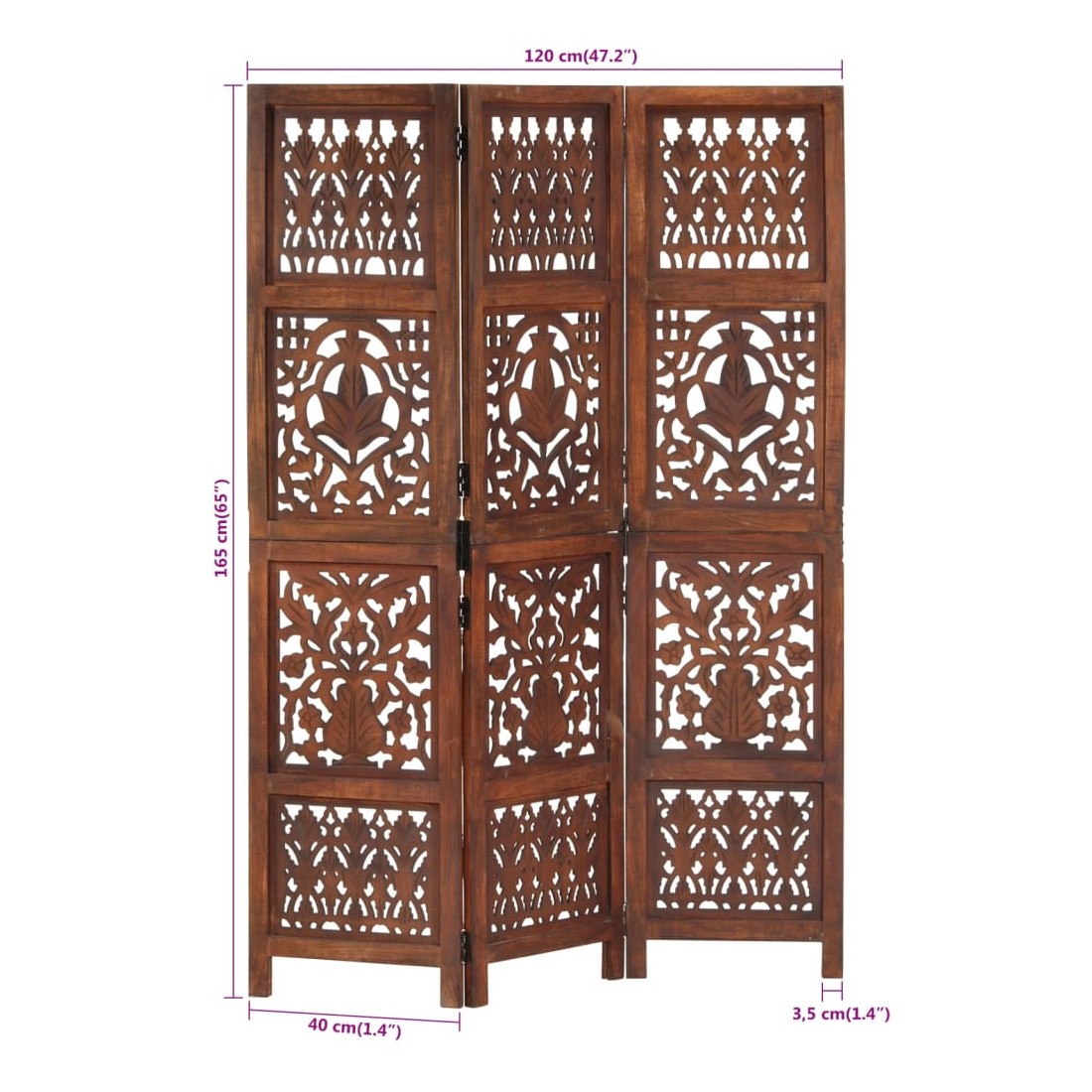 Cloison de séparation 3 panneaux Marron 120x165cm Bois manguier