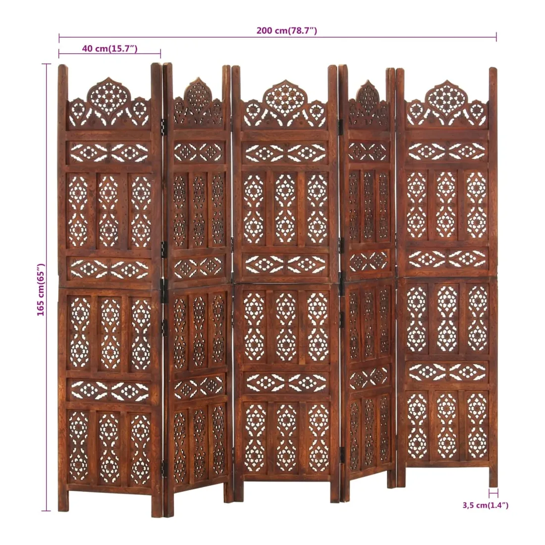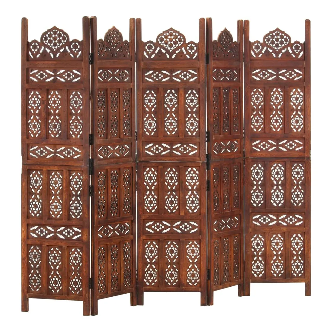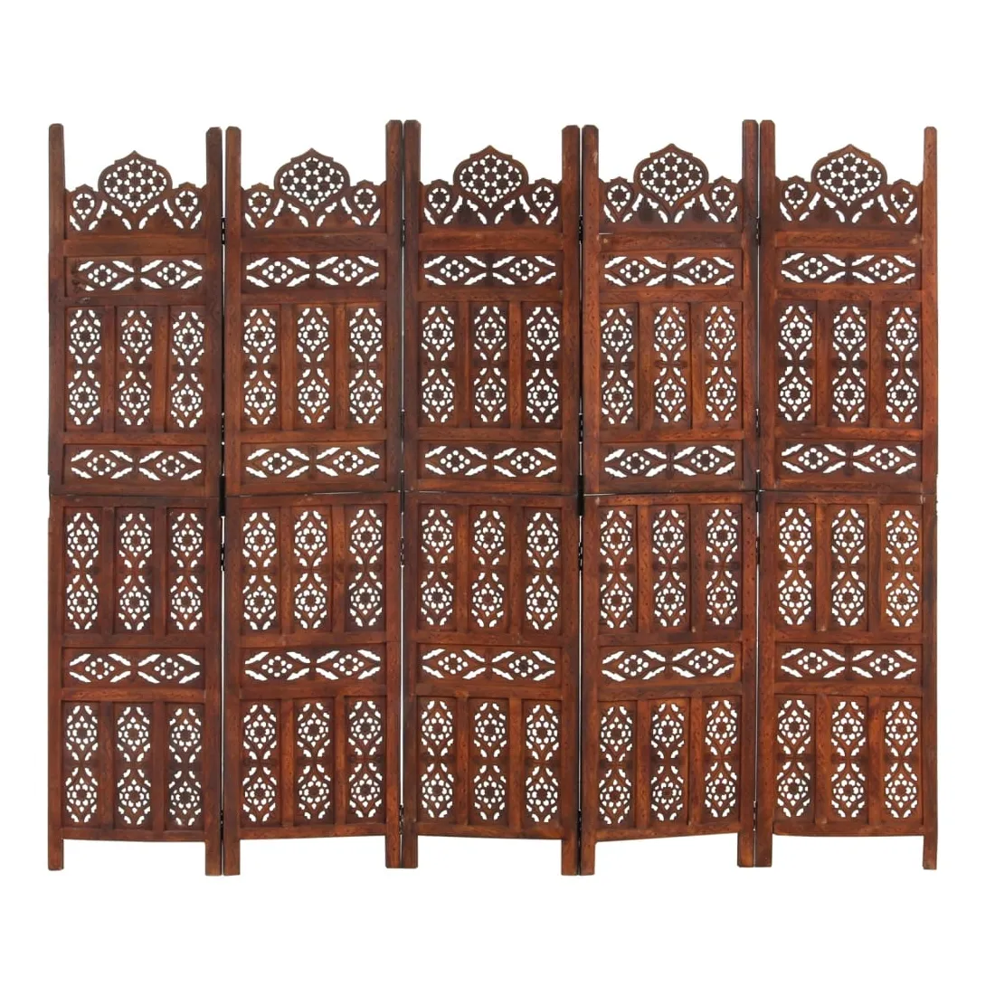 Cloison de séparation 5 panneaux Marron 200x165cm Bois manguier