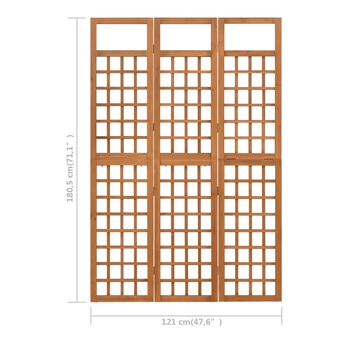 Cette cloison de séparation de pièce/patio, qui peut également être utilisée comme treillis, fonctionne comme un support parfait pour les plantes et leur offre suffisamment d'espace pour étendre les branches. Le treillis est fabriqué en bois de sapin massif, ce qui le rend durable et adapté à un usage intérieur. Ce treillis en bois offre un support suffisant pour les rosiers ou autres plantes grimpantes. Il peut également être utilisé comme cloison de séparation de pièce et crée un sentiment d'intimité et de confort. De plus, ce paravent en bois peut être replié pour gagner de la place lorsqu'il n'est pas utilisé. Veuillez noter que le bois est un produit naturel et peut présenter des imperfections.