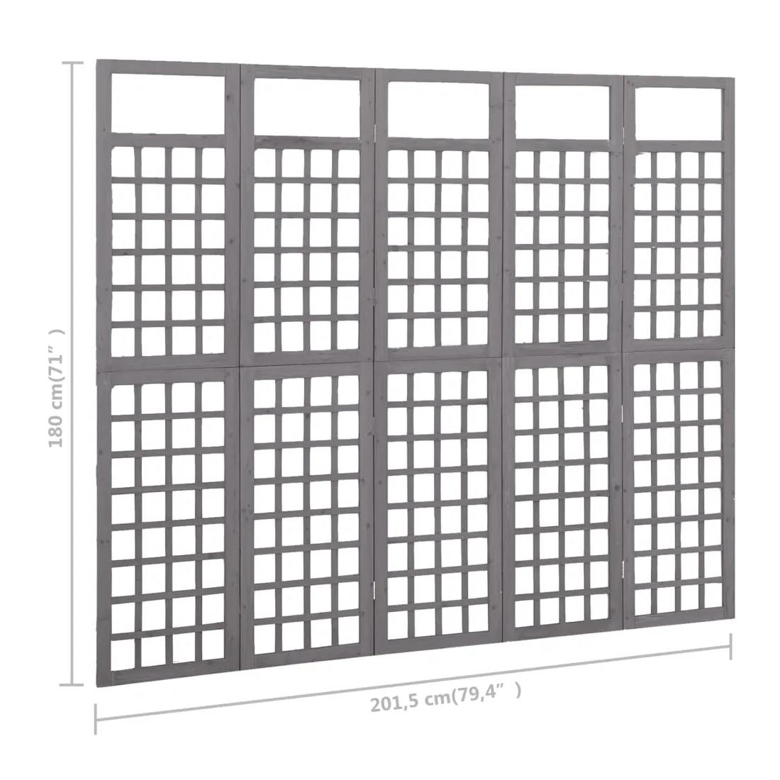 Cloison de séparation à 5 panneaux Bois de pin Gris 201,5x180cm
