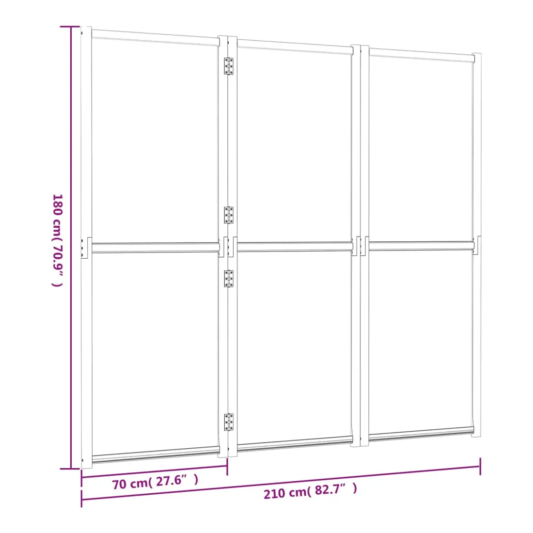 - Taille de chaque panneau : 70 x 180 cm (l x H)