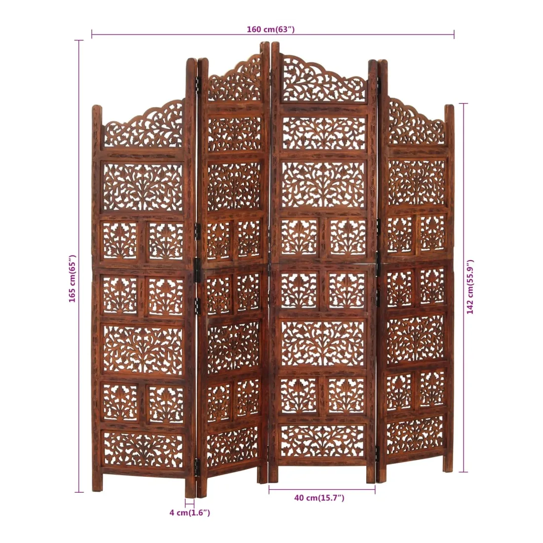 Cloison de séparation 4 panneaux Marron 160x165cm Bois manguier