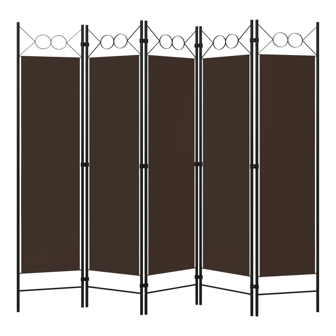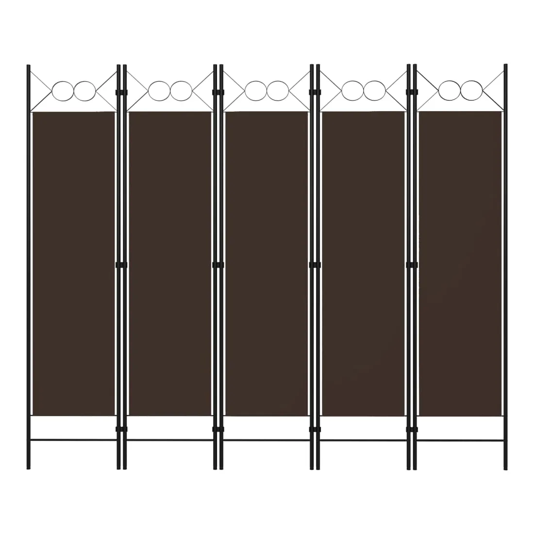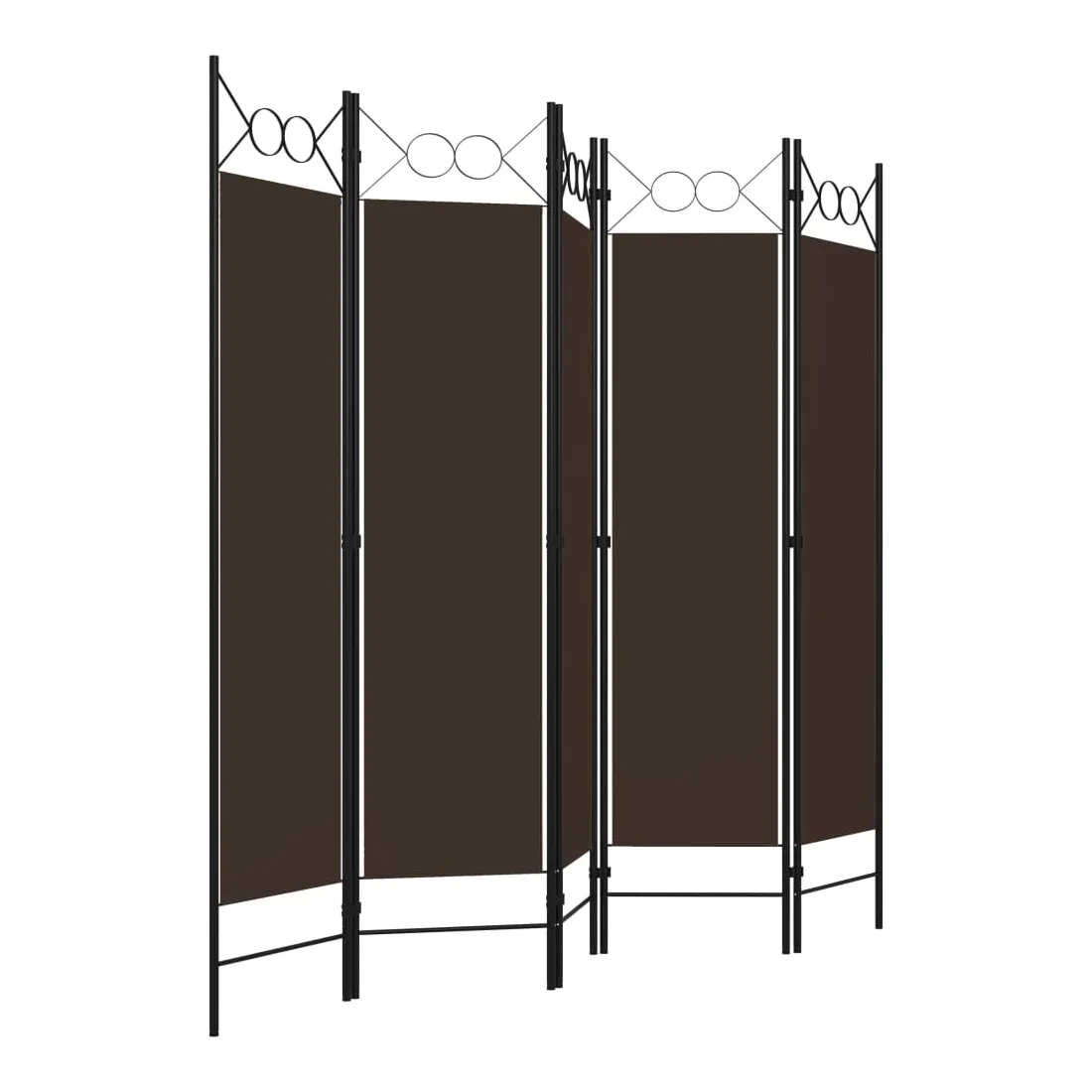 Notre cloison de séparation autoportante et pratique à 5 panneaux peut être utilisée comme cloison, écran d'intimité ou pour la décoration. Elle offre une intimité idéale dans la chambre à coucher ou un compartiment de la pièce. Le dessus avec un design circulaire ajoute une élégance supplémentaire. Cette cloison de séparation, composée d'un cadre en fer enduit de poudre et d'écrans en tissu, peut être facilement pliée lorsqu'elle n'est pas utilisée. Remarque : le tissu ne bloque pas complètement toute la lumière.