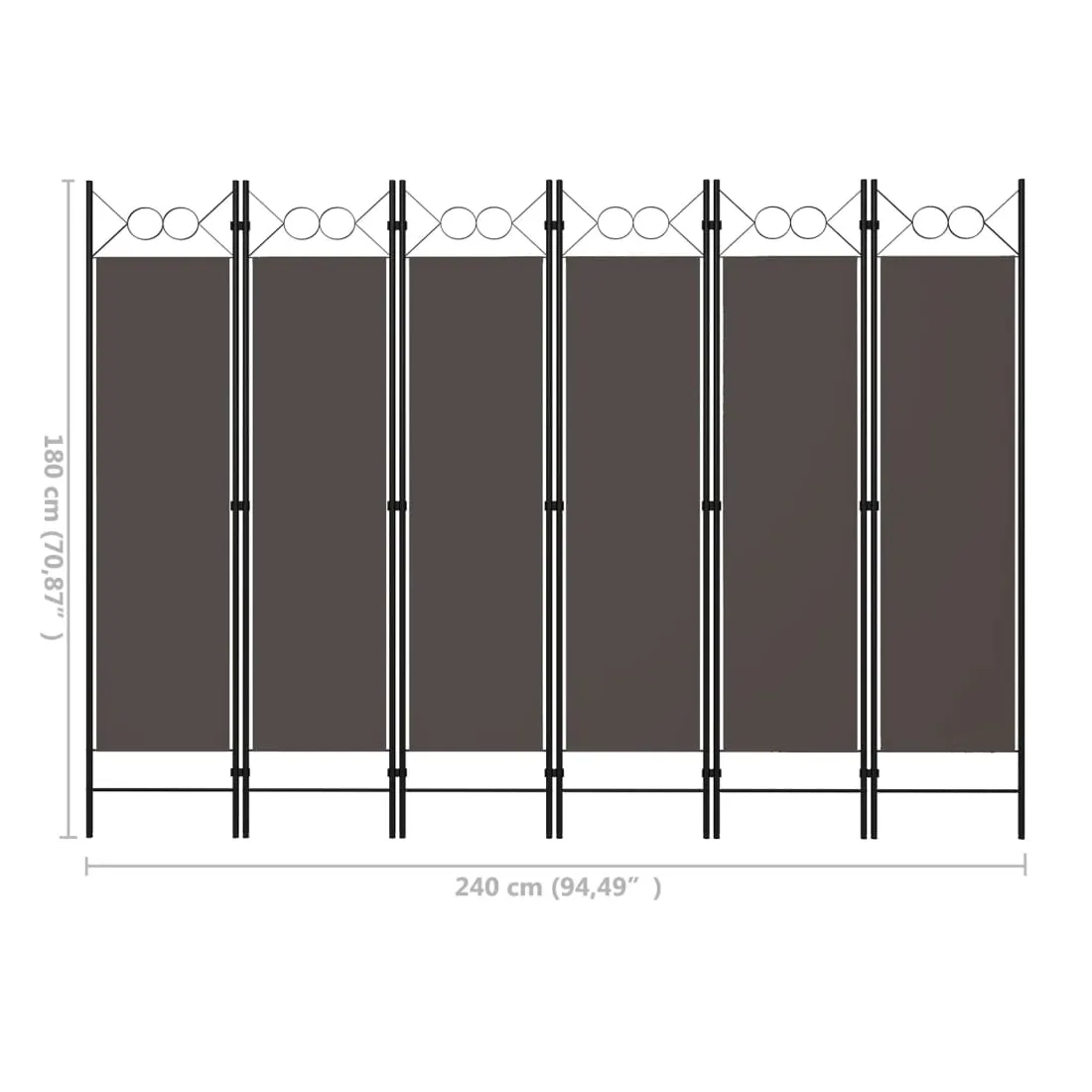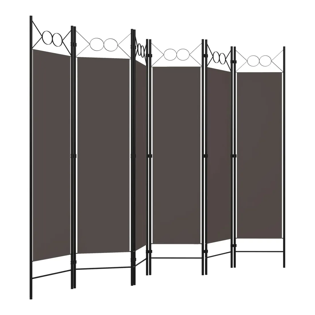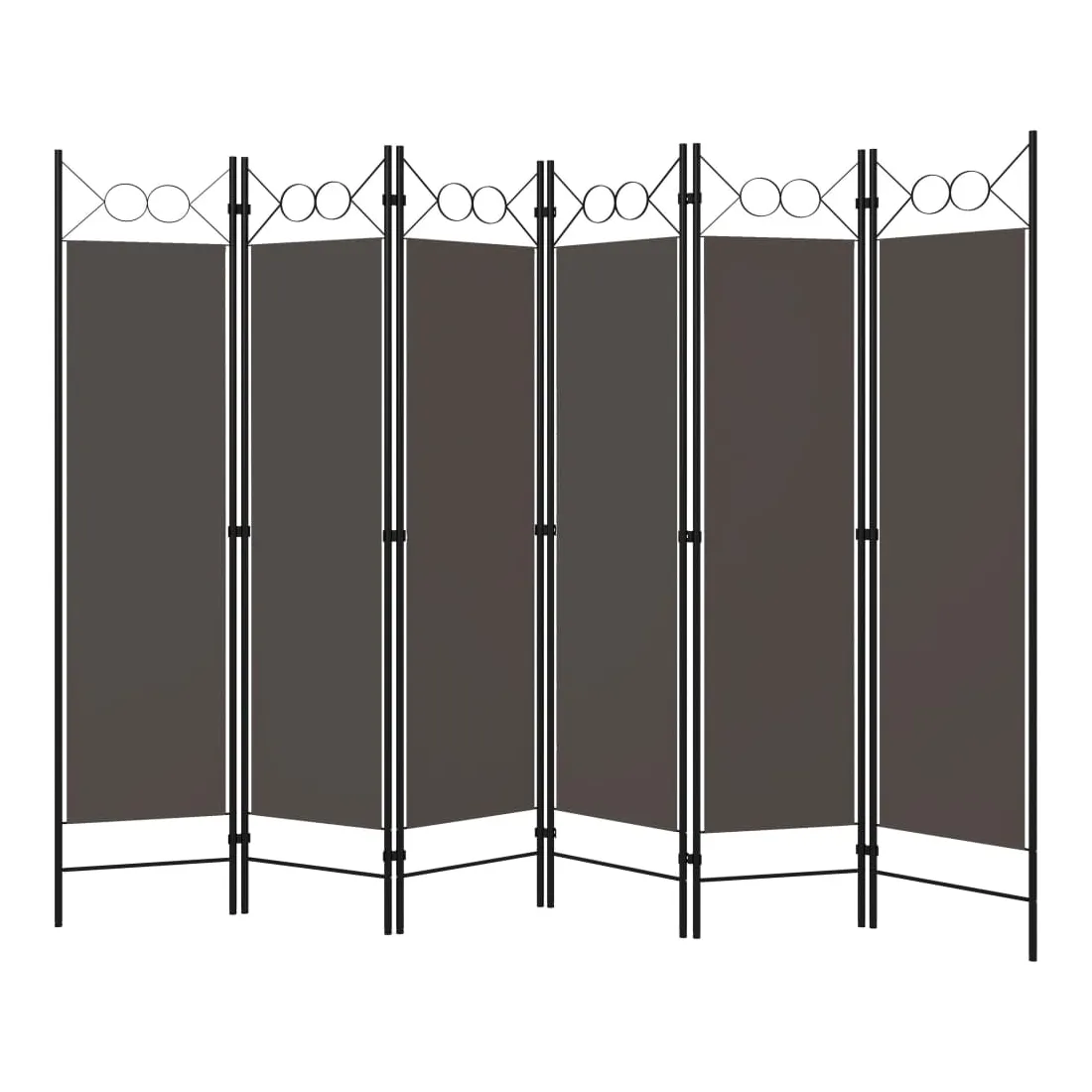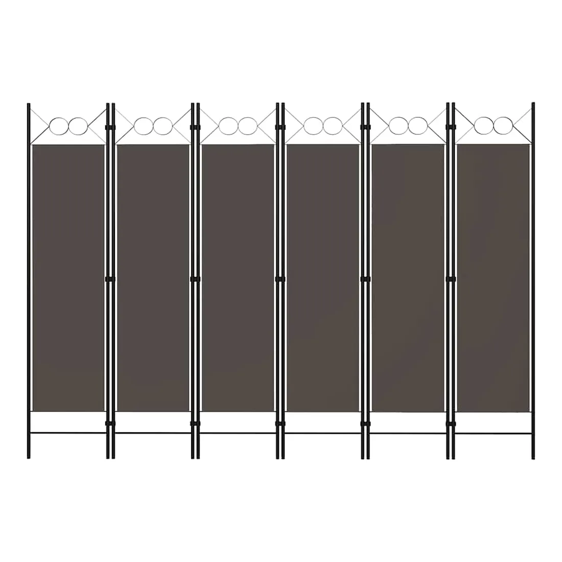 Notre cloison de séparation autoportante et pratique à 6 panneaux peut être utilisée comme cloison, écran d'intimité ou pour la décoration. Elle offre une intimité idéale dans la chambre à coucher ou un compartiment de la pièce. Le dessus avec un design circulaire ajoute une élégance supplémentaire. Cette cloison de séparation, composée d'un cadre en fer enduit de poudre et d'écrans en tissu, peut être facilement pliée lorsqu'elle n'est pas utilisée. Remarque : le tissu ne bloque pas complètement toute la lumière.