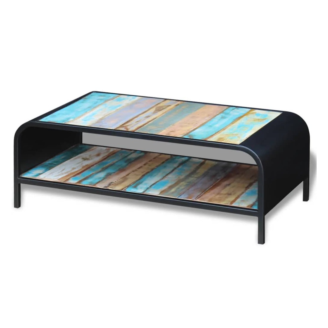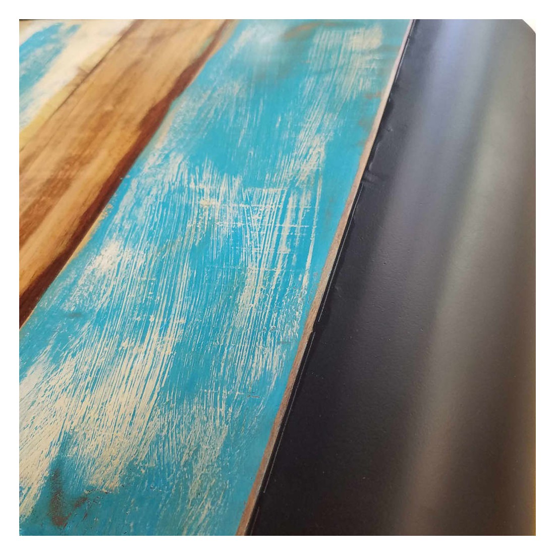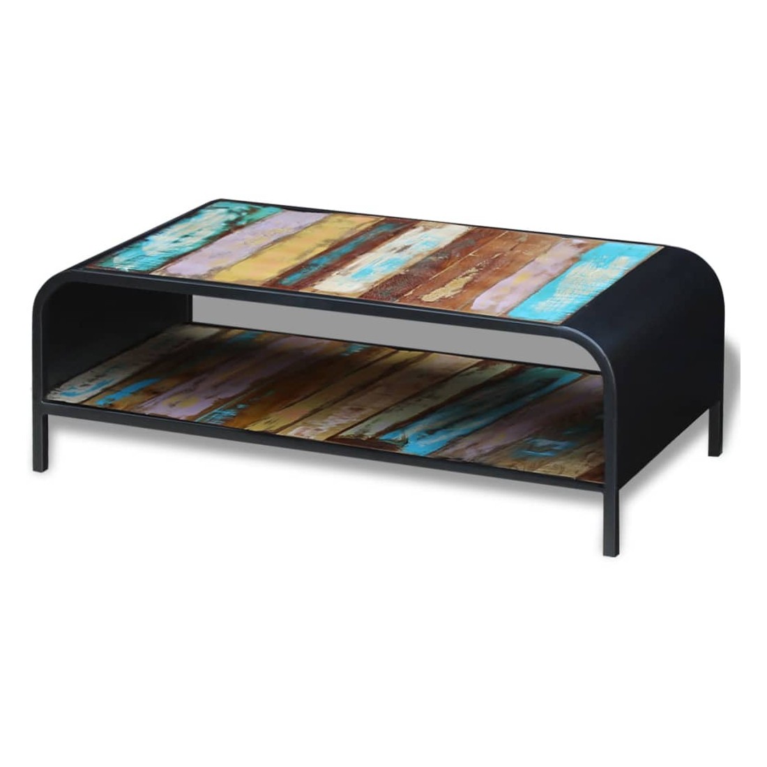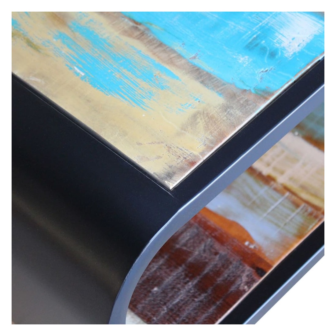 Cette table basse en bois au style vintage, faite en bois de récupération massif, sera un supplément indémodable à votre maison. Grâce à sa structure en acier, la table est très stable et durable. Le dessus offre une surface stable et robuste pour que vous puissiez y poser vos verres, un panier de fruits, un vase ou d'autres objets décoratifs. L'étagère du dessous vous offre assez d'espace pour pouvoir y ranger des appareils multimédias, des livres, des magazines et d'autres objets que vous voulez garder à portée de main. La table basse peut également être utilisée comme table de canapé, table de salon, table d'appoint, bout de canapé, etc. La table basse est faite en bois de récupération, ce qui signifie que chaque pièce est unique et légèrement différente l'une de l'autre. Les meubles faits en bois de récupération possèdent les caractéristiques de bois différents comme le bois de teck, d'acacia, de manguier, de saal, etc. Le bois de récupération est solide, stable, durable et magnifique. Les signes d'usure et la structure de fibres visible donnent à chaque meuble une apparence unique et leur propre histoire. Cette table basse est entièrement faite à la main et la qualité de l'artisanat s'ajoute à son style rétro spectaculaire. Chaque étape du processus est effectuée avec le plus grand soin, qu'il s'agisse de la recombinaison, le polissage, la peinture ou le cirage. Remarque importante : les couleurs varient d'un meuble à l'autre, rendant chacune de nos tables basses unique. La livraison est aléatoire, ce qui garantit l'exclusivité et l'individualité de votre produit.