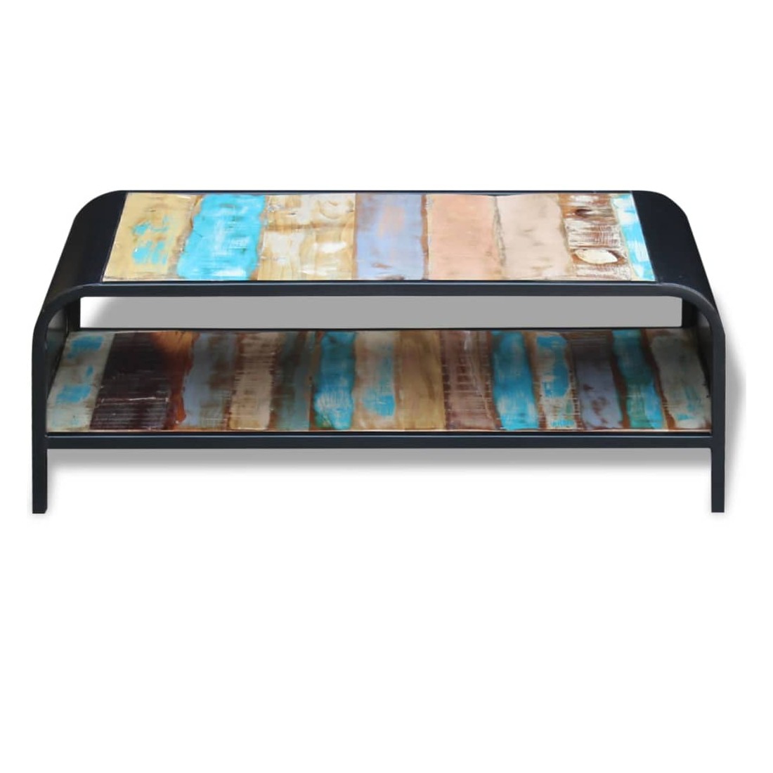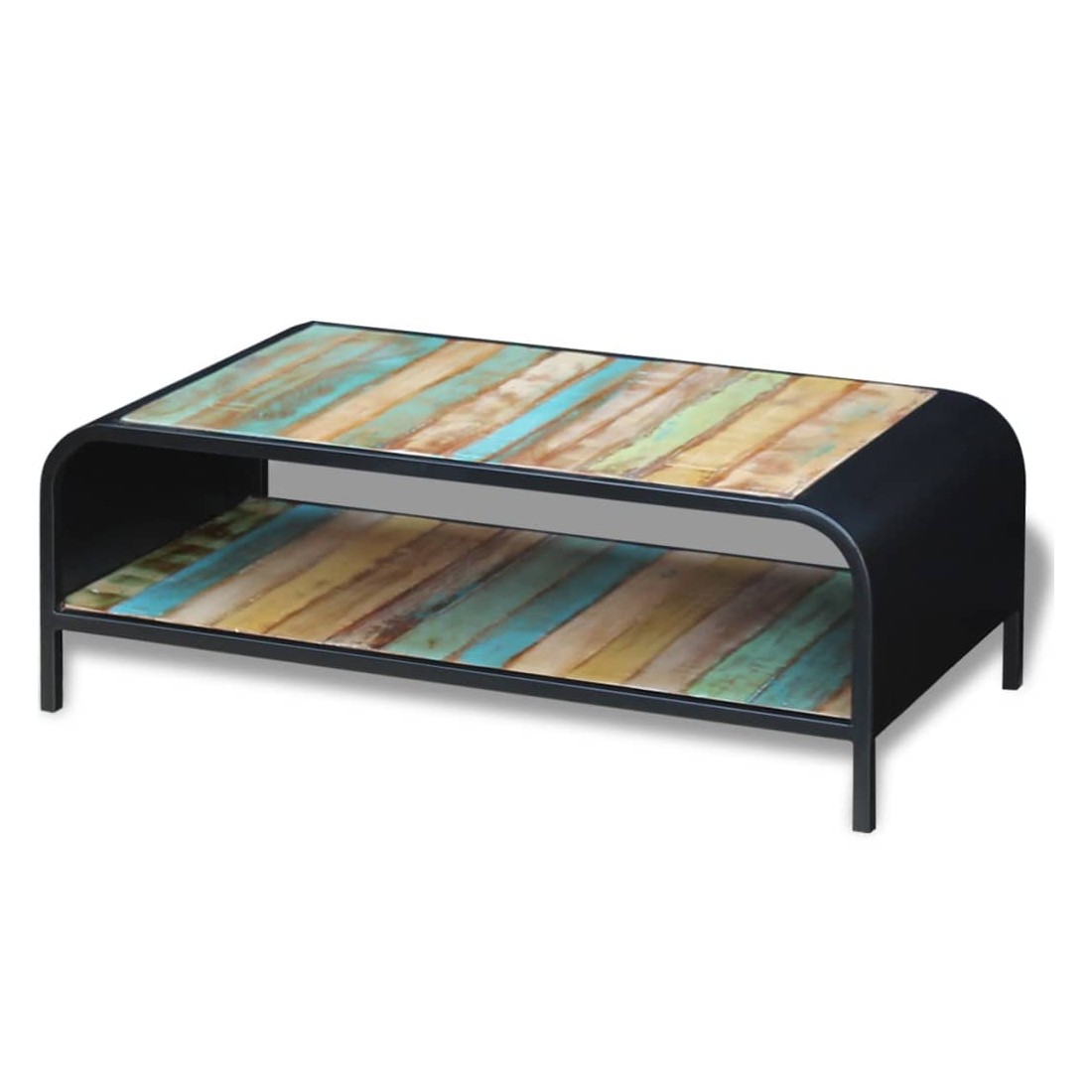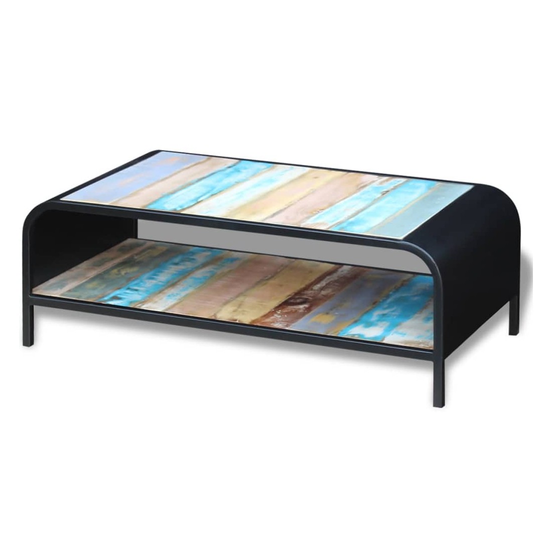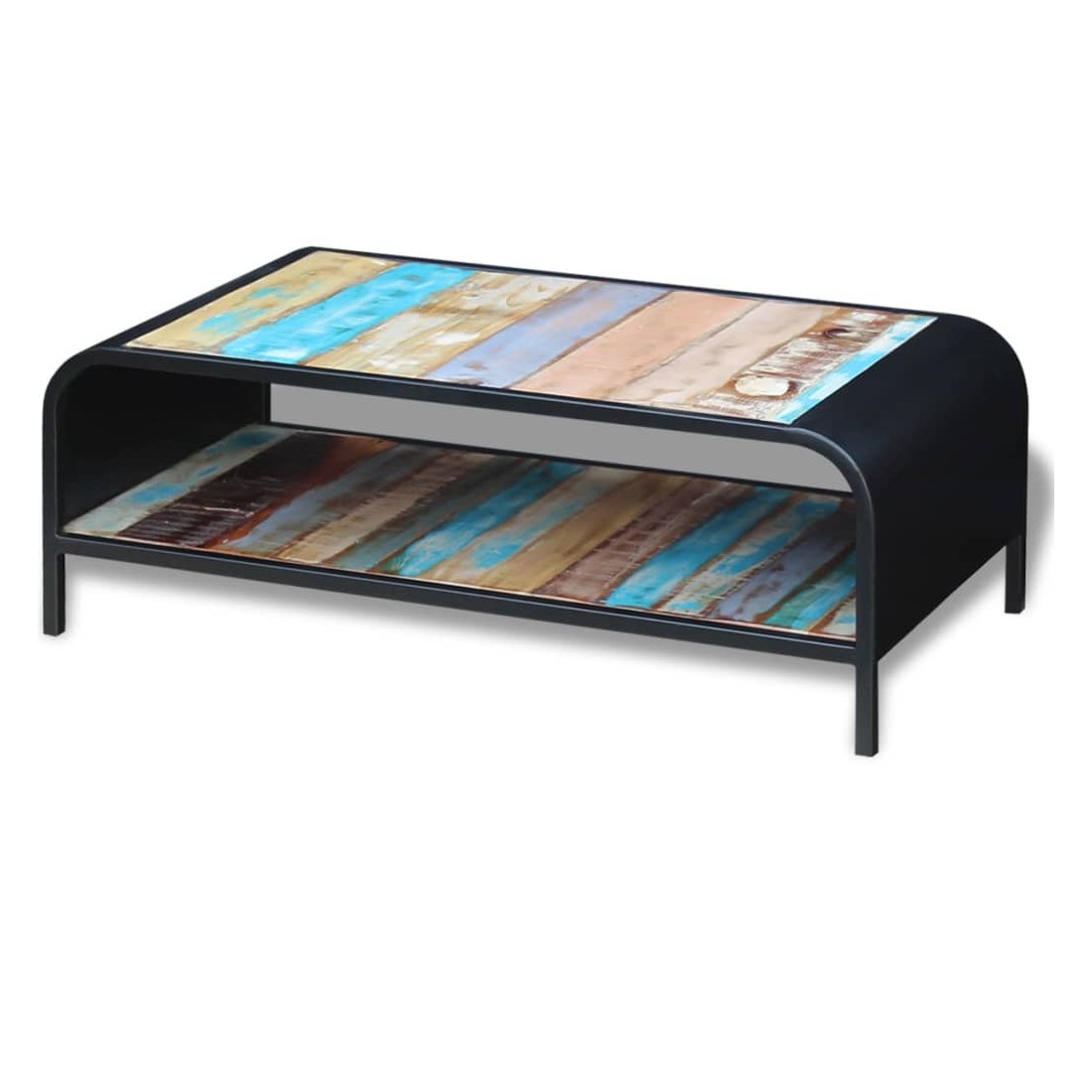 Cette table basse en bois au style vintage, faite en bois de récupération massif, sera un supplément indémodable à votre maison. Grâce à sa structure en acier, la table est très stable et durable. Le dessus offre une surface stable et robuste pour que vous puissiez y poser vos verres, un panier de fruits, un vase ou d'autres objets décoratifs. L'étagère du dessous vous offre assez d'espace pour pouvoir y ranger des appareils multimédias, des livres, des magazines et d'autres objets que vous voulez garder à portée de main. La table basse peut également être utilisée comme table de canapé, table de salon, table d'appoint, bout de canapé, etc. La table basse est faite en bois de récupération, ce qui signifie que chaque pièce est unique et légèrement différente l'une de l'autre. Les meubles faits en bois de récupération possèdent les caractéristiques de bois différents comme le bois de teck, d'acacia, de manguier, de saal, etc. Le bois de récupération est solide, stable, durable et magnifique. Les signes d'usure et la structure de fibres visible donnent à chaque meuble une apparence unique et leur propre histoire. Cette table basse est entièrement faite à la main et la qualité de l'artisanat s'ajoute à son style rétro spectaculaire. Chaque étape du processus est effectuée avec le plus grand soin, qu'il s'agisse de la recombinaison, le polissage, la peinture ou le cirage. Remarque importante : les couleurs varient d'un meuble à l'autre, rendant chacune de nos tables basses unique. La livraison est aléatoire, ce qui garantit l'exclusivité et l'individualité de votre produit.